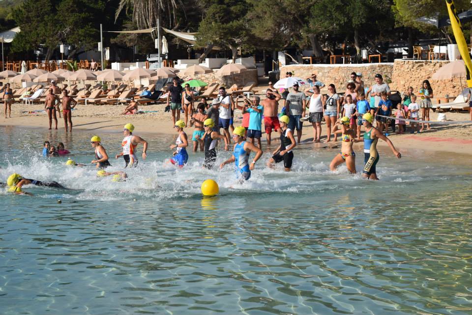 El pistoletazo de salida se dio a las 9.30 horas. Luis Cardona (Club Natació Eivissa) fue el primero en completar los 750 metros de natación con un tiempo de 10:01 minutos, seguido de cerca por sus compañeros de equipos Albert Ribas (10:05) y Aritz Rodríguez (10:12) y por el madrileño Jaime Rosado (10:16).