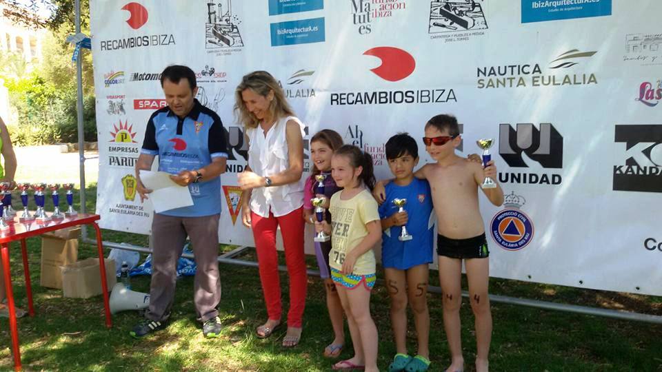 La competición arrancó a las 9.00 horas con sólo 47 deportistas. Albert Ribas (CN Eivissa Triatló) fue el más rápido en el agua, con un tiempo de 8’51» minutos, seguido de cerca por Josep Torres (9’03») e Ismael Parrilla (Bfit Ibiza Triatlón), un segundo después. En categoría femenina, con siete triatletas en liza, la primera en completar este primer segmento fue Claudia Ballesté (Triatló Santa Eulària), con 10’47» minutos.