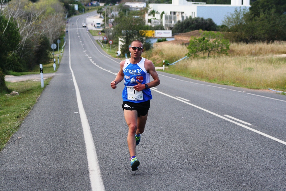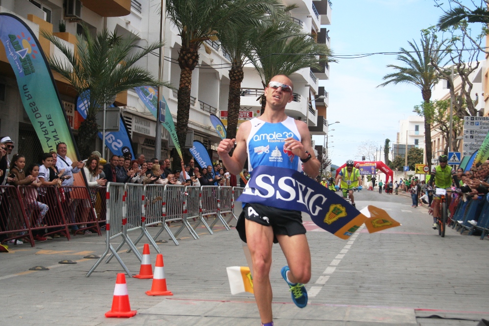 Desde un primer momento, el atleta santaeulaliense se puso al frente de la carrera, seguido, muy de lejos, por Óscar Santos (Playas de Castellón) y Josep Torres (Ibiza Half Triatlón). Los tres, en ese orden, se subieron al podio masculino. El primero fue, cómo no, Guirado, que lograba su triplete particular en la prueba tras sus triunfos de 2012 y 2015 con un magnífico tiempo de 46’11». Santos, que repite el segundo puesto del año pasado, llegó a continuación con 48’50» y Torres, en tercer lugar, paró el crono en 50’04».