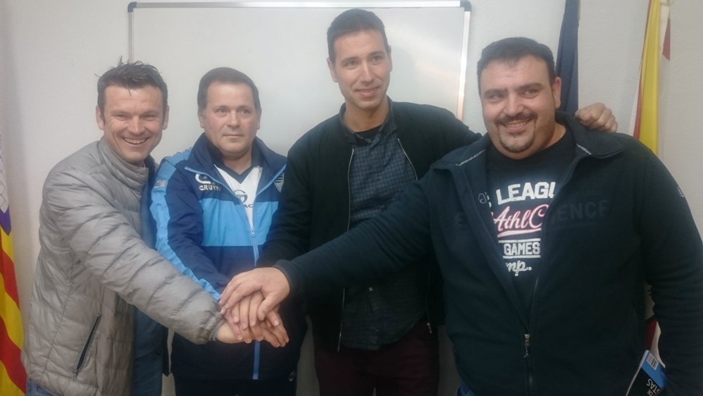 Álex Arabí (San Rafael), Ángel Nadal (Ciudad de Ibiza), Buti (UD Ibiza) y Juan Vicente Roig (CD Ibiza) se desean suerte tras el sorteo.