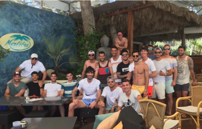 Paco Natera (Fútbol Pitiuso) / La Real Sociedad al completo se encuentra de vacaciones en Ibiza después de conseguir en la última jornada de Liga su clasificación para la Liga Europa. Los futbolistas vascos disfrutan de las bondades que ofrece la isla y ayer al mediodía comieron en el Restaurante Malibú, en la playa de ses Salines.