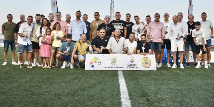 La SD Portmany, dentro de los actos conmemorativos de su centenario, ha querido reconocer la labor de los cuerpos técnicos del club en un homenaje que ha tenido lugar este sábado en el campo de fútbol de Sant Antoni. El presidente del club, Nacho Andrés Roselló, ha hecho entrega a los 45 entrenadores y a resto de miembros de los cuerpos técnicos, como fisioterapeutas, de una figura conmemorativa con el escudo del centenario, y ha destacado “el trabajo y la dedicación de todas las personas que destinan parte de su tiempo a formar y educar en los valores del deporte a los más 300 jugadores que integran el club”.