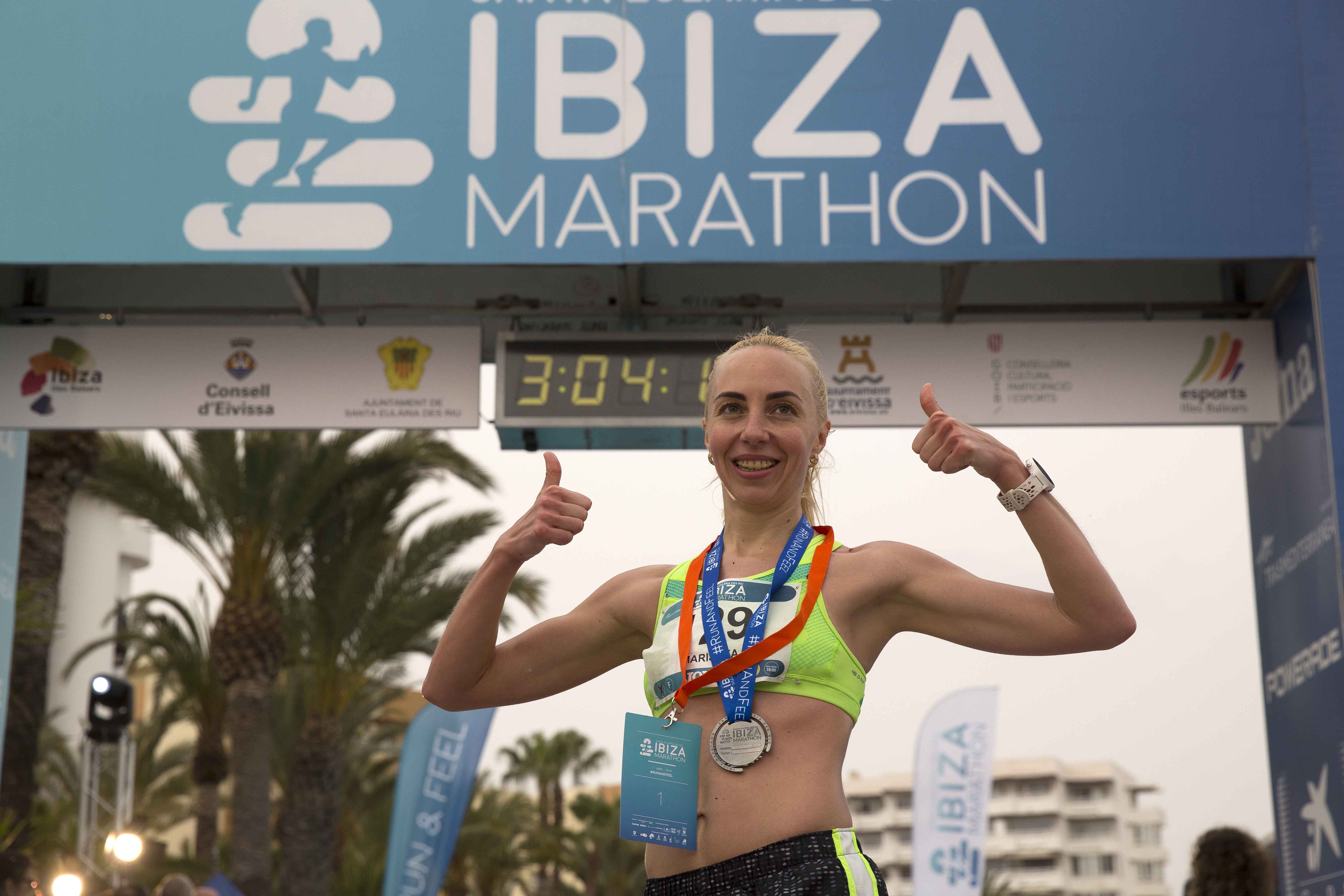 El podio de la categoría masculina absoluta lo han completado Pharis Irungu Kimani, parando el crono en 02:19:30 en segundo lugar, y el conocido atleta local Toni ‘Buitre’ Marí Colomar, que ha vuelto a saborear el bronce del Ibiza Marathon con un tiempo de 02:42:17.
