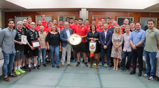 @Noudiari / La selección española de balonmano, que está concentrada en Eivissa, ha acudido esta mañana a una recepción en el Consell Insular, donde ha sido recibida por la consellera balear de deportes, Fanny Tur, y el presidente de la máxima institución ibicenca, Vicent Torres, entre otros cargos públicos.