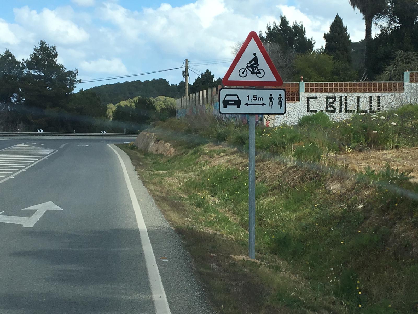 Las señales que recuerdan la obligación de respetar el metro y medio con los ciclistas llegan a Ibiza