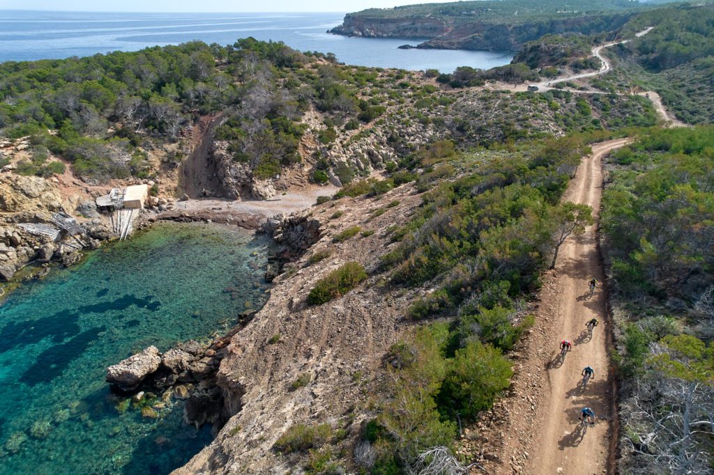 Los primeros kilómetros, de falso llano, han llevado a los participantes hasta el alto de Puig d’en Morna, en la Cala de San Vicent, para posteriormente descender por una extensa y preciosa trialera que dejaba a los participantes unas espectaculares vistas. En dirección a Portinax, han continuado a Cala Xarraca, enlazando tramos de sube-baja, rompe piernas absoluto, tramo donde la dupla italiana -que encabezaba el pelotón- ha sufrido un leve pinchazo. En menos de un minuto lo han resuelto, para coger ritmo poco a poco, decisión consensuada por Andrea y Stefano, y a su vez acertada.