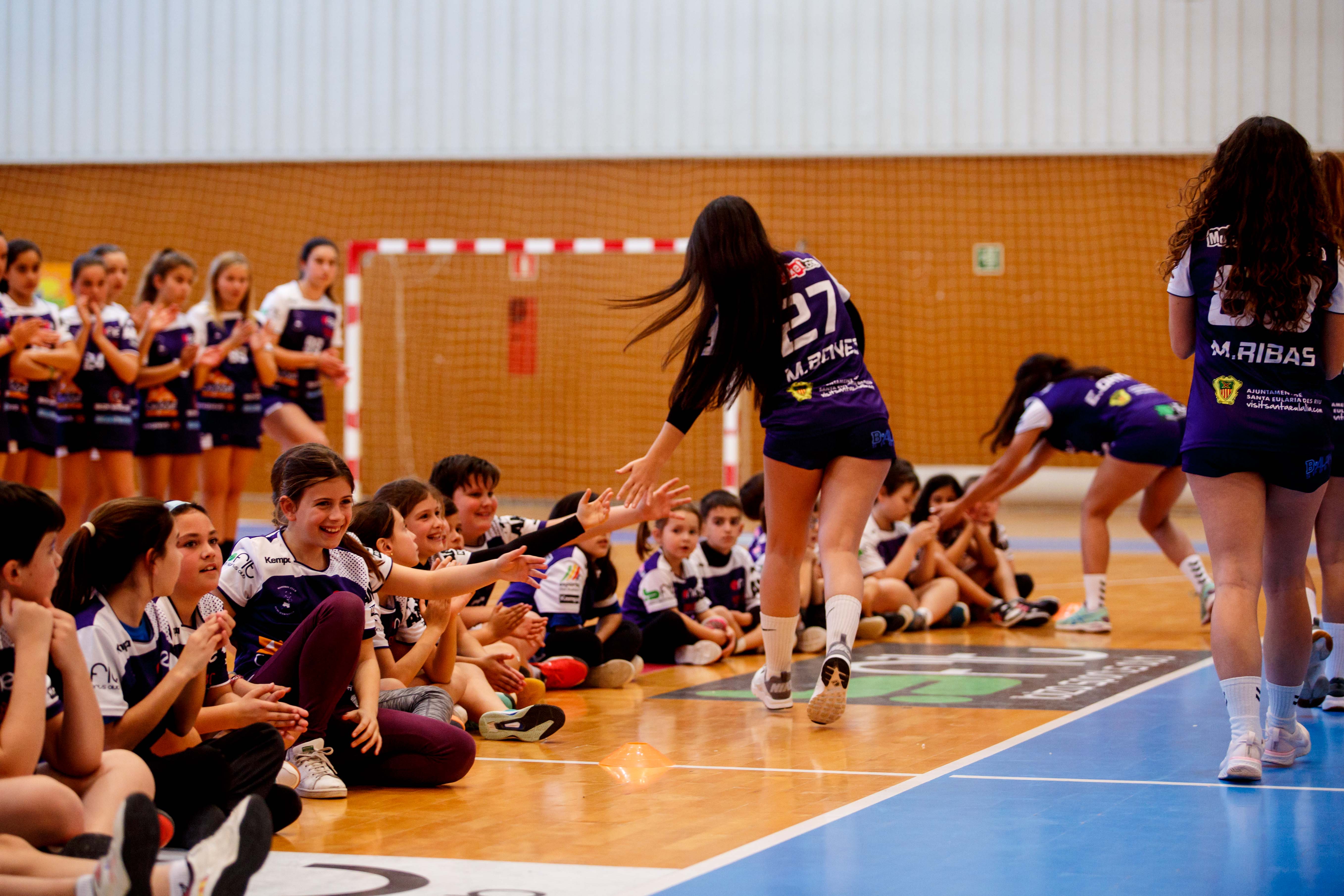 Los más jóvenes fueron los principales protagonistas de una tarde en la que fueron aclamados por el público que asistió al pabellón municipal de Santa Eulària, que después disfrutó de la victoria del equipo sénior femenino de la División de Honor plata ante la Associació Lleidatana.