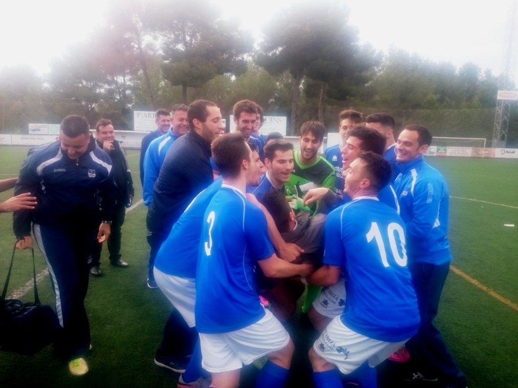 @C. Vidal / Fue el momento más emotivo del partido disputado este domingo en el Municipal de Sant Rafel. Los jugadores, una vez finalizado el encuentro ante el Poblense, hicieron un pasillo y mantearon a un emocionado Manolo Aparicio, que recibió también una placa de manos del presidente, Paco Bonet, como reconocimiento a las cuatro temporadas que el futbolista ovetense ha defendido la camiseta del San Rafael.