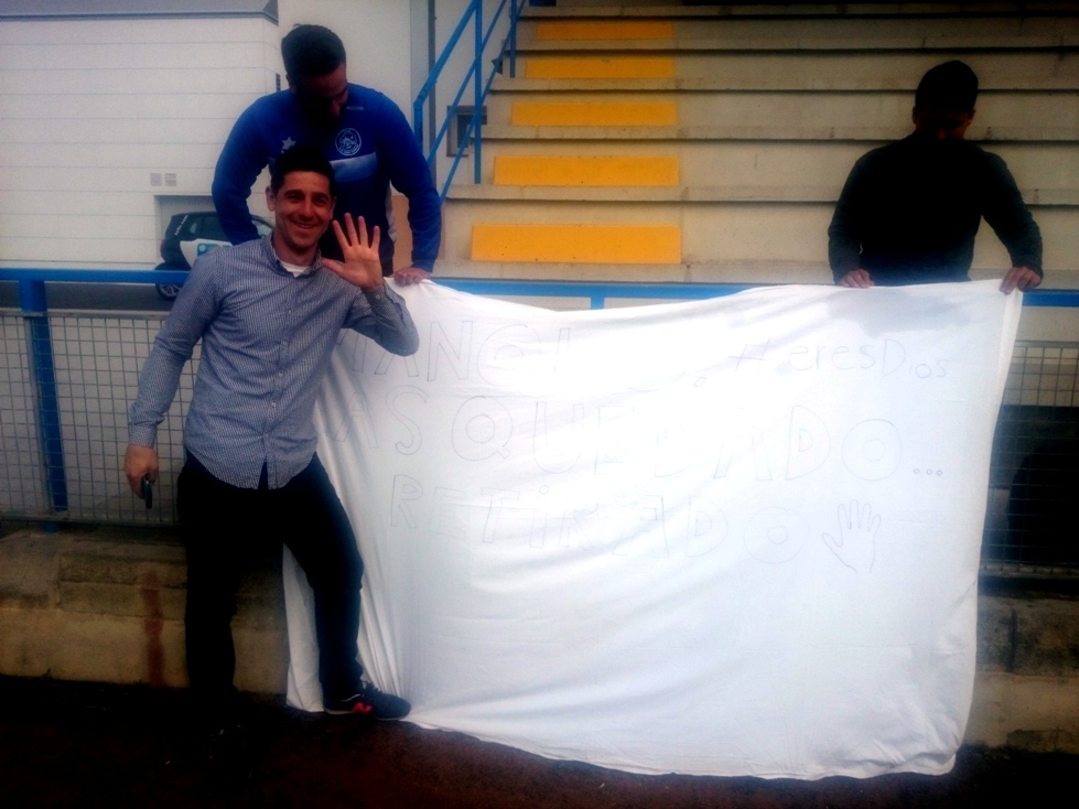 «Me hubiera gustado retirarme en el campo, pero no ha sido posible debido a un esguince de rodilla. Ha sido un bonito gesto por parte de mis compañeros y la verdad es que no me esperaba este homenaje. Ya estaba todo hablado de que colgaba las botas a final de temporada, pero estoy muy agradecido a todo el club», señala Aparicio, que durante la entrega de la placa y la entrevista no pudo contener las lágrimas.