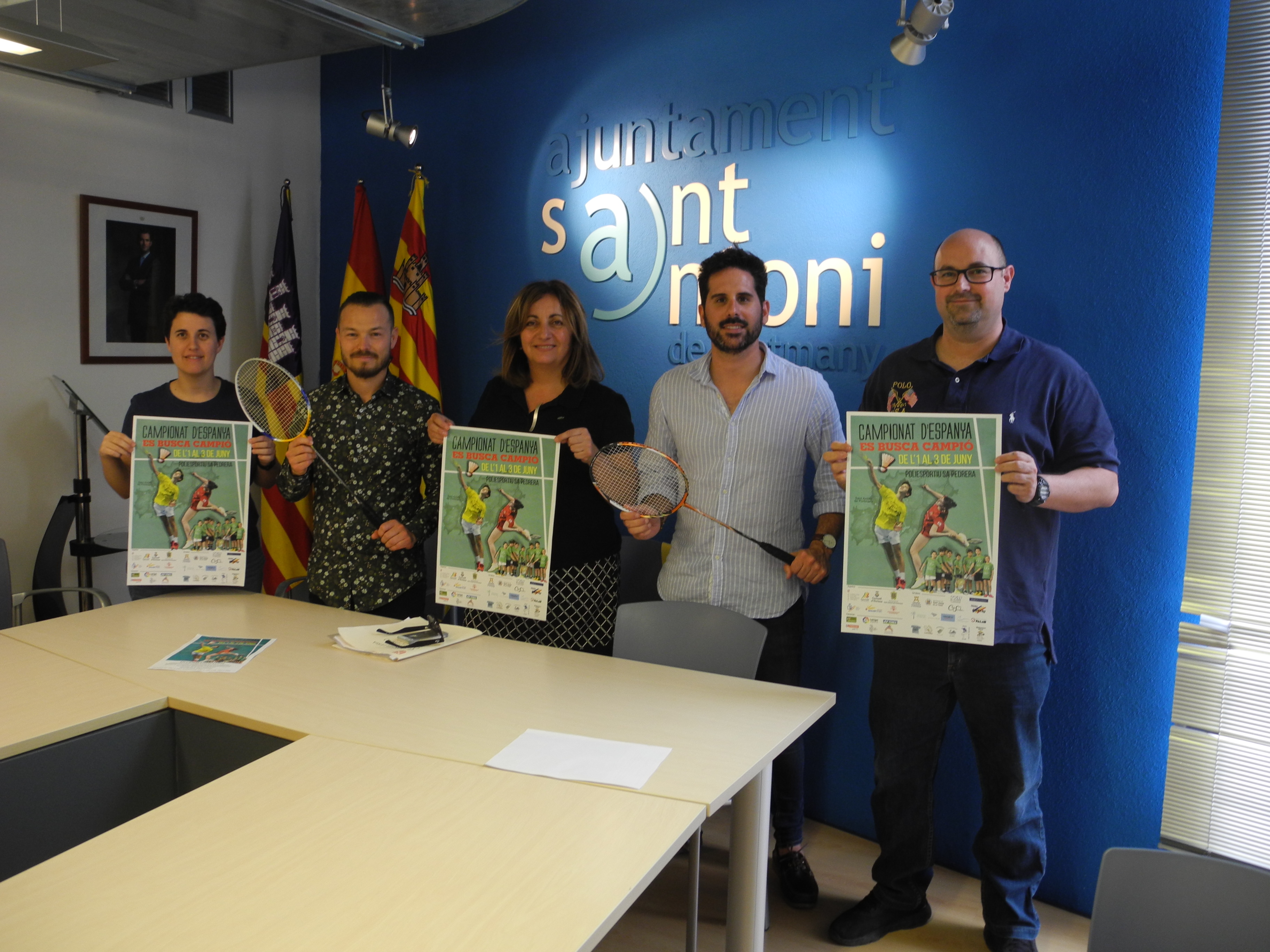 @Noudiari / El polideportivo de sa Pedrera acogerá, entre el 1 y el 3 de junio, el Campeonato de España de bádminton. La consellera balear de Deportes, Fanny Tur, ha presentado el evento acompañada por el director insular de Deportes, Fernando Gómez; el concejal de Deportes de Sant Antoni, Antonio Lorenzo, y los representantes de la Federación Balear de Bádminton, Silvia Riera y Ernesto García.