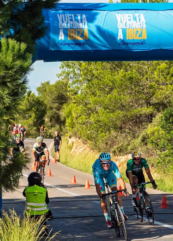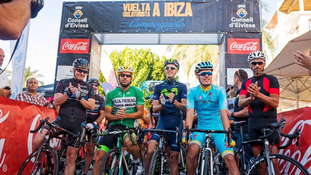 @C. V. / La Vuelta Cicloturista a Ibiza Campagnolo 2015 arrancó este sábado desde el Passeig de ses Fonts con 280 participantes, nuevo récord de la prueba, y el protagonismo en esta primera etapa de los corredores Lluís Mas (Caja Rural-Seguros RGA), Luis León (Astana), Miguel Carrió (Abica) y Mayalen Noriega (Bizkaia-Durango).