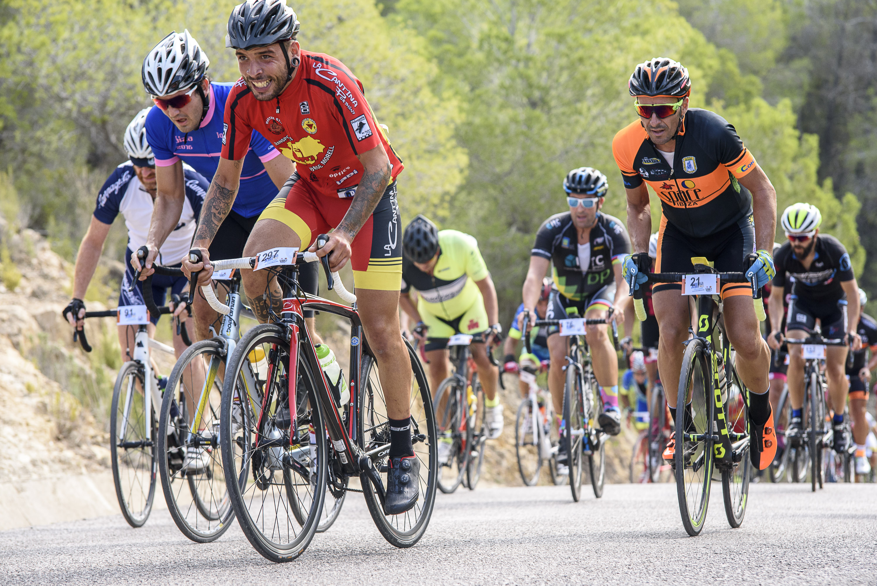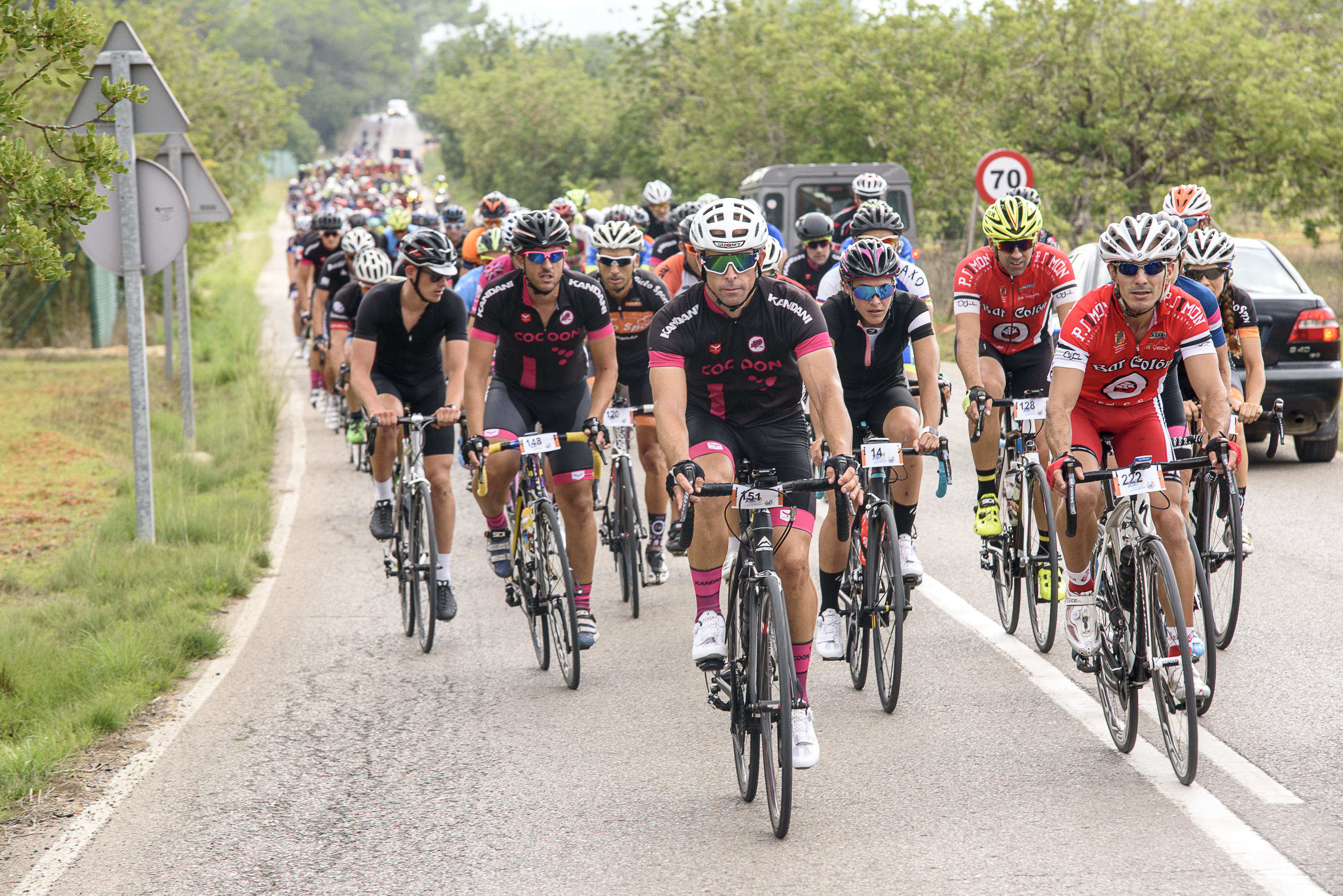 Decenas de cicloturistas se toman con mucha más calma un recorrido en el que hay oportunidad para grabar vídeos con el móvil, hacerse fotos en las curvas con mejores vistas de la carretera que desciende a Benirràs o reencontrarse con viejos compañeros de bicicleta en la zona de avituallamiento. Incluso los hay que, fruto de los calambres, el cansancio o las duras rampas que toca ascender, deciden poner a tierra y avanzar unos kilómetros con la furgoneta de la organización.