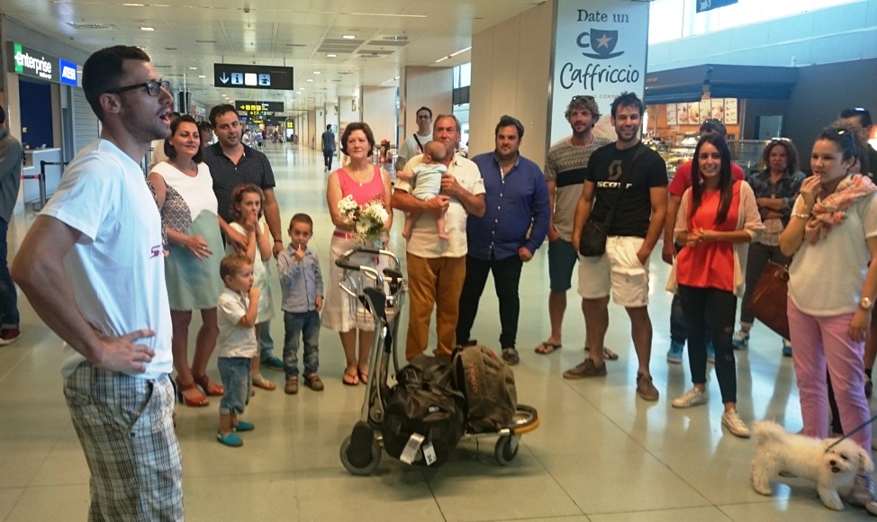 El protagonista de dicho recibimiento llegó visiblemente agotado, aunque muy emocionado por los aplausos de sus familiares y amigos. «Me podía pensar que vendría mi familia a recibirme, pero no me esperaba que estuvieran aquí todos mis amigos al pie del cañón. Me ha gustado y me he emocionado mucho», señaló el ciclista.