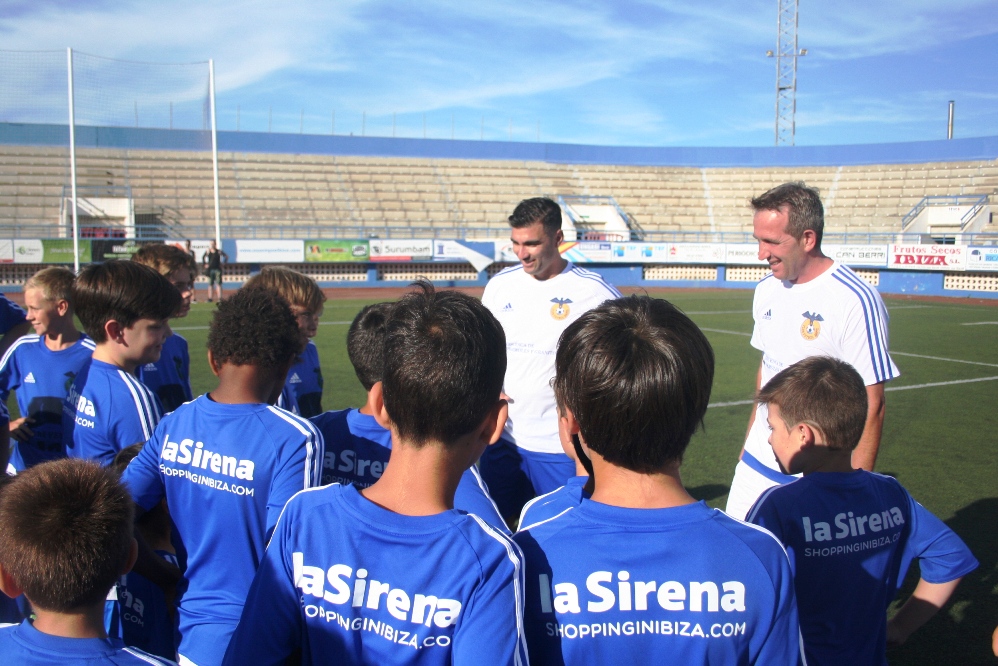 @C. V. / José Antonio Reyes, exjugador del Sevilla, Arsenal, Real Madrid y Atlético, es el protagonista desde este lunes y hasta el sábado de las primeras jornadas de tecnificación y perfeccionamiento del Rápid, que ha abierto hoy sus puertas en el campo de fútbol de Can Misses con la participación de unos 35 niños de entre 7 y 15 años.