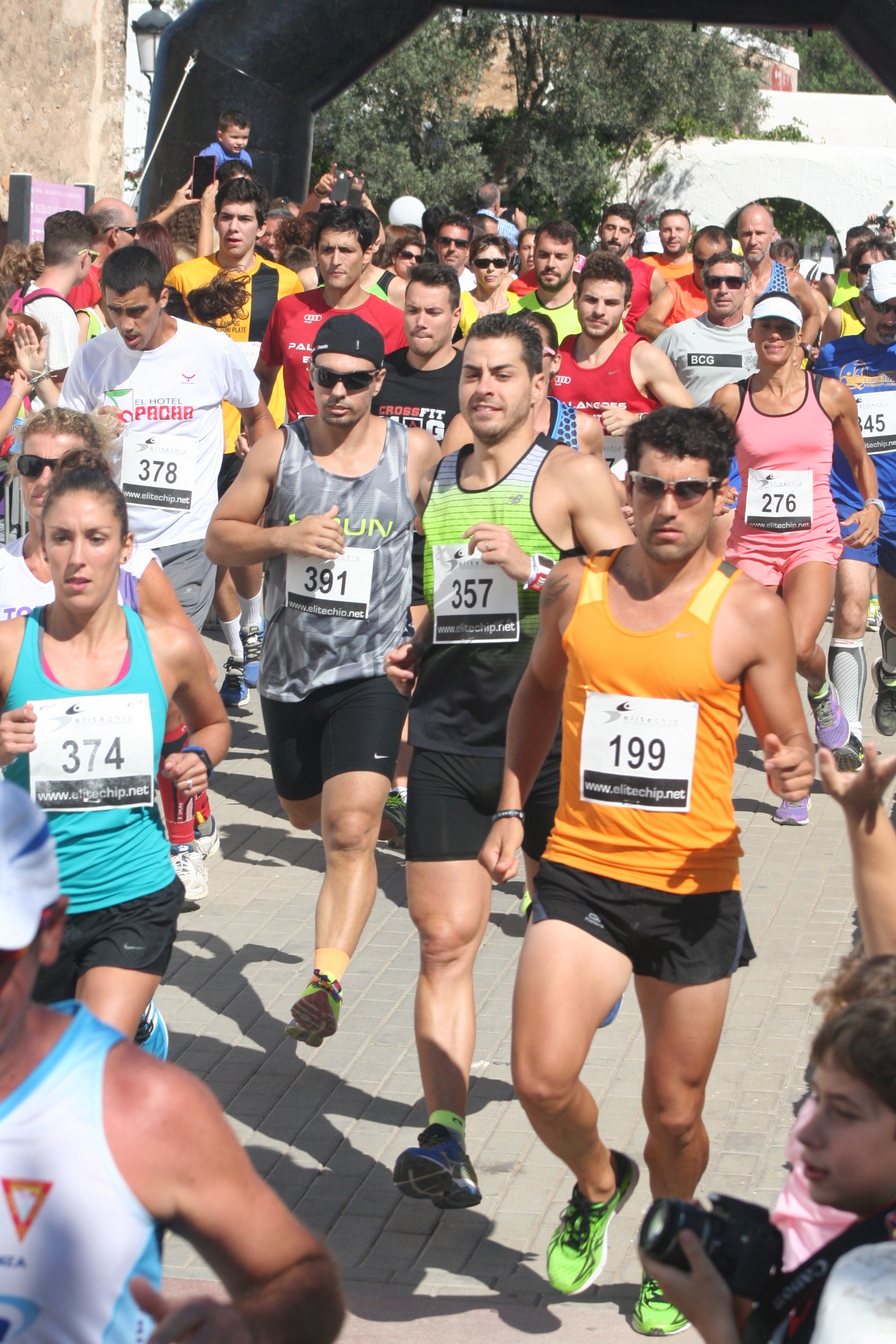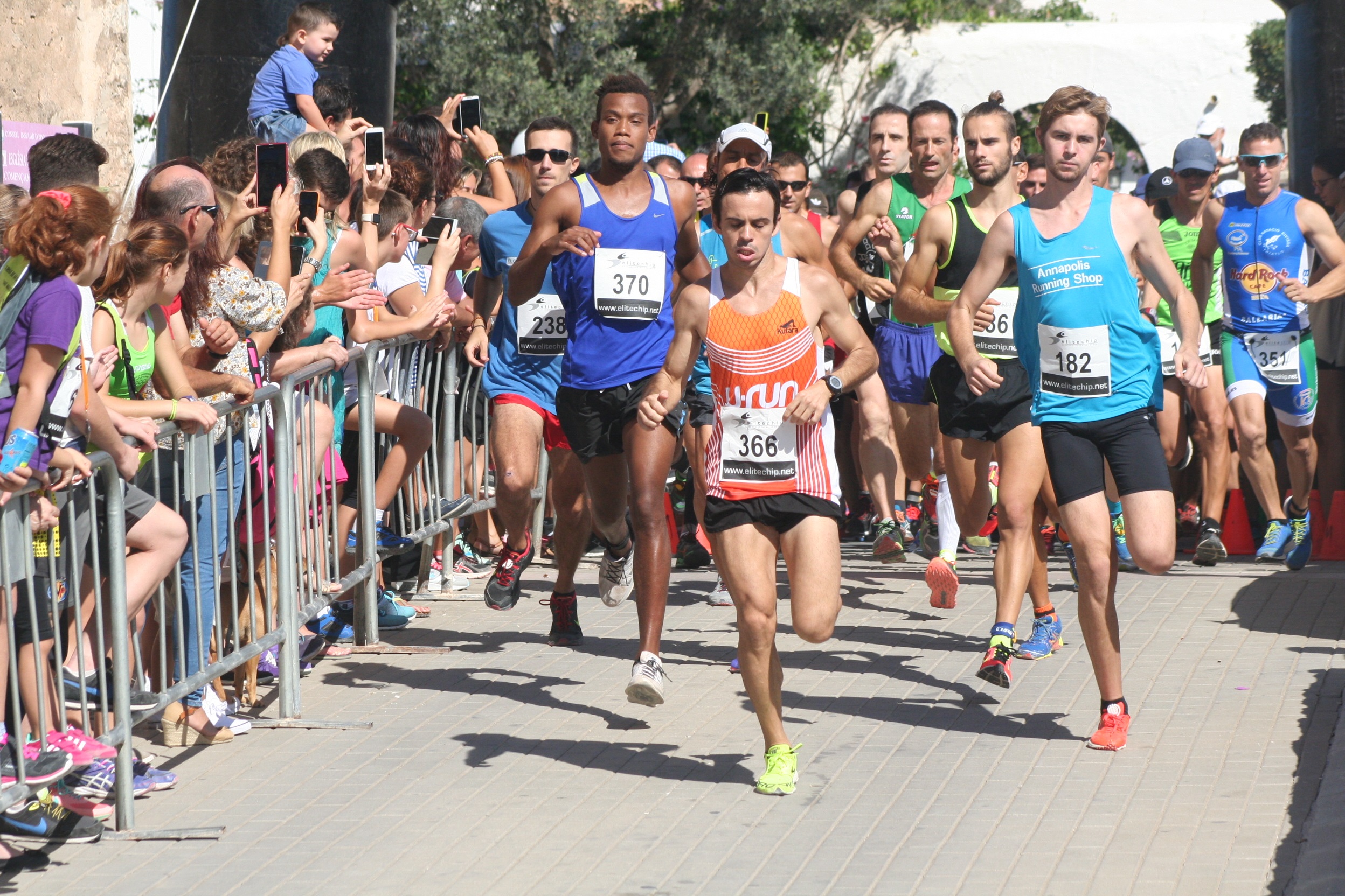 Un total de 240 participantes tomaron parte en la I Cursa de sa Garrova, que alcanzó la cifra de los 400 con todas las pruebas de las categorías inferiores. En la plaza de la Iglesia de Sant Agustí se vivió un gran ambiente, con castillos hinchables para los más pequeños, además del reparto de coca de algarroba y sandía, entre otros alimentos, para los deportistas.