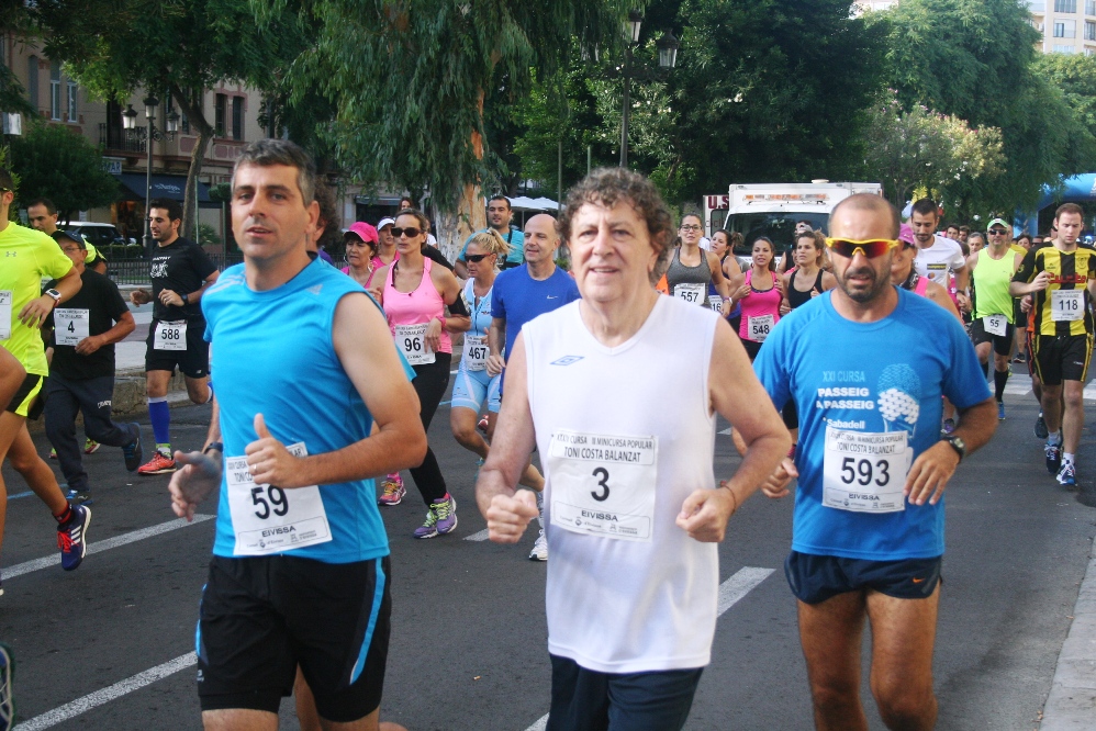 @C. Vidal / Óscar Santos (Playas de Castellón) y Atteneri Tur (CA Pitiús) se llevaron el triunfo este domingo por la mañana en la trigésimo cuarta edición de la Mini Marató Toni Costa Balanzat. El tercer gran protagonista de la prueba, que reunió a un total de 373 corredores de todas las edades en el Paseo Vara de Rey, fue Felipe Vivancos, el mejor atleta pitiuso de todos los tiempos, que debutó en una carrera popular para divertirse y coger forma.