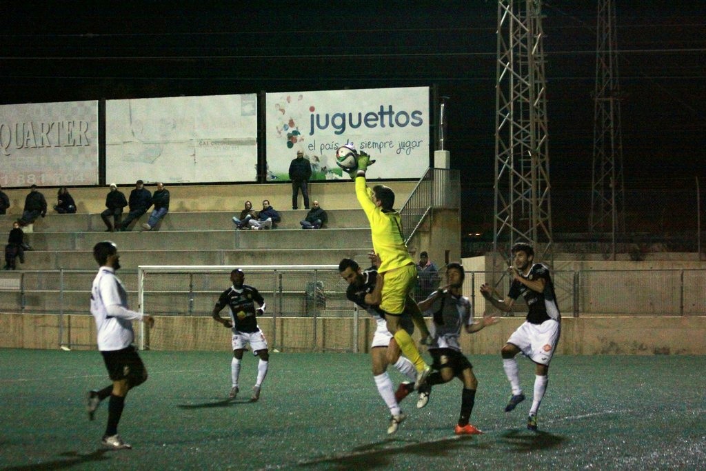«Fue en una jugada en la que el portero salió con la rodilla por delante y golpeó en las costillas a Pacheta», señala Dani Mori, entrenador del conjunto de Santa Eulària, que tuvo que sustituir al futbolista en el minuto 75 debido a esa acción.