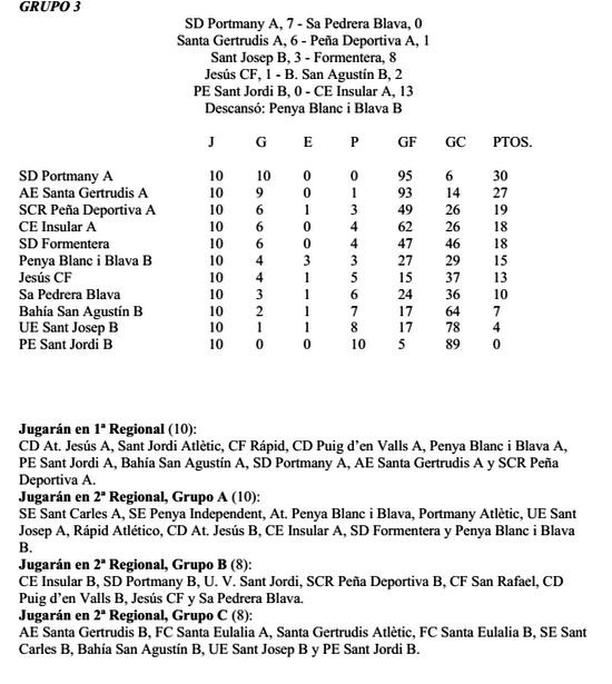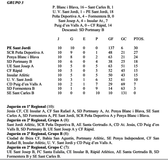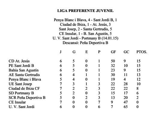 El torneo benjamín coronó al Atlético Jesús, el equipo más goleador de todas las categorías (162 goles), en el grupo 1, además de la Penya Blanc i Blava (grupo 2) y Portmany (grupo 3). Mientras, en prebenjamines, Peña Deportiva, Penya Blanc i Blava y Portmany ya habían cantado el alirón en la pasada jornada. Después de las fiestas navideñas, en el mes de enero, comenzarán las competiciones ligueras en todas estas categorías.