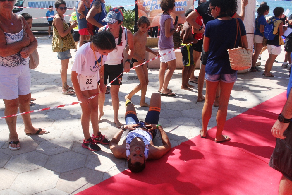 Los últimos 2.500 metros de carrera fueron bastante cómodos para los dos representantes del Club Natació Eivissa Triatló, que no vieron peligrar en ningún momento el triunfo. Albert Ribas venció con un tiempo de 37:35 minutos, seguido por Ismael Parrilla (Club Triatlón Bfit Ibiza) y Aritz Rodríguez (CN Eivissa Triatló).