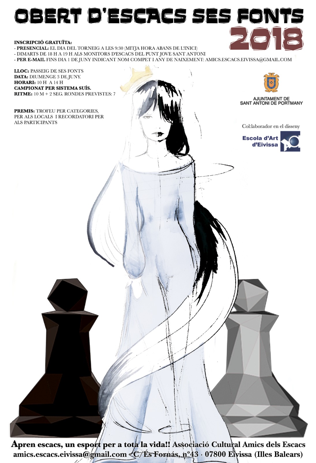 El campeonato se celebrará según el sistema suizo y está prevista la realización de siete rondas. Los alumnos de la Escola d’Arts d’Eivissa han colaborado diseñando el cartel anunciador del torneo. Amics dels Escacs ofrece semanalmente clases de ajedrez en el Espai Jove de Sant Antoni para niños a partir de 6 años.