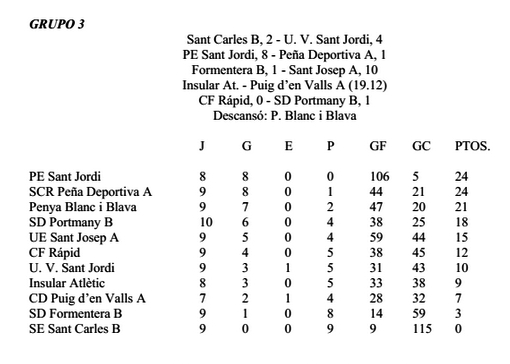 El próximo fin de semana se disputa la última jornada en las categorías infantil, alevín, benjamín y prebenjamín. Habrá que esperar a esos partidos, aunque equipos como el Portmany, que puede añadir tres títulos más en el grupo 1 infantil, el 2 benjamín y el 3 prebenjamín, la Peña Deportiva, en el grupo 2 infantil, y el Sant Jordi, en el grupo 3 alevín, están a un paso de proclamarse campeones.