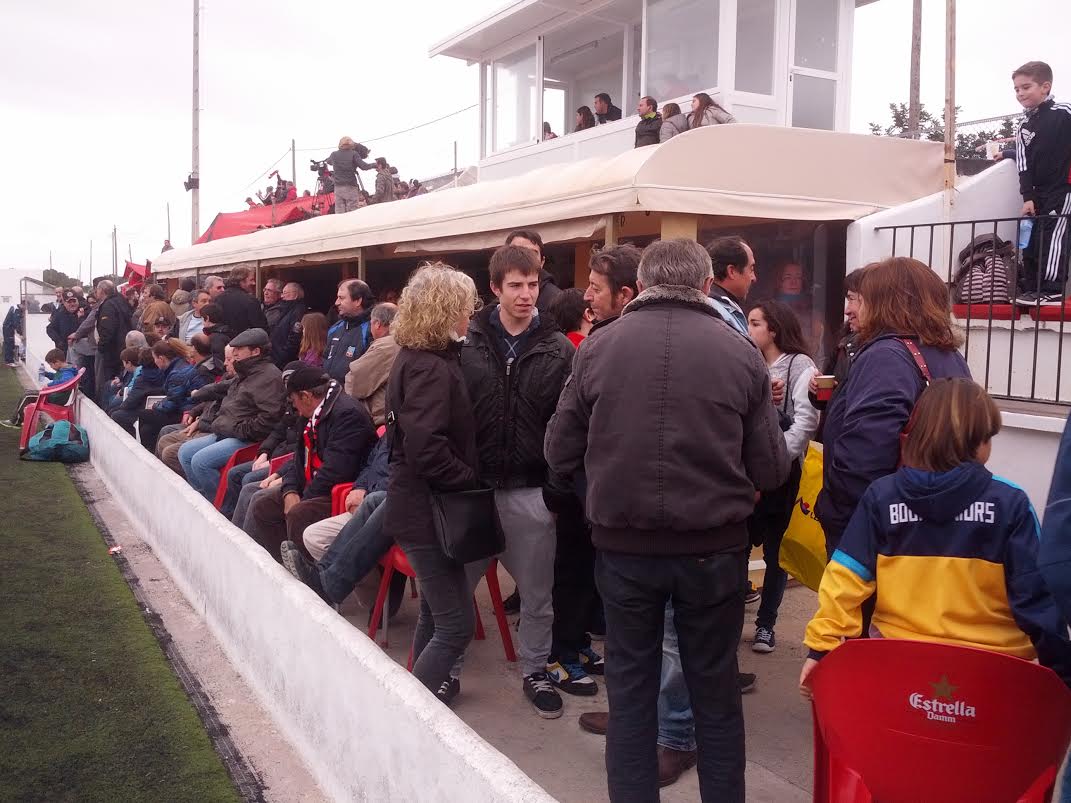 En una de las dos gradas que divide la cabina de prensa y el bar del estadio, la hinchada más vociferante del Formentera desplegaba y plegaba cada cierto tiempo una bandera enorme que cubría parte de los aficionados, entre ellos el presidente del Consell Insular, Jaume Ferrer, que no se pierde partido que los suyos jueguen en casa.