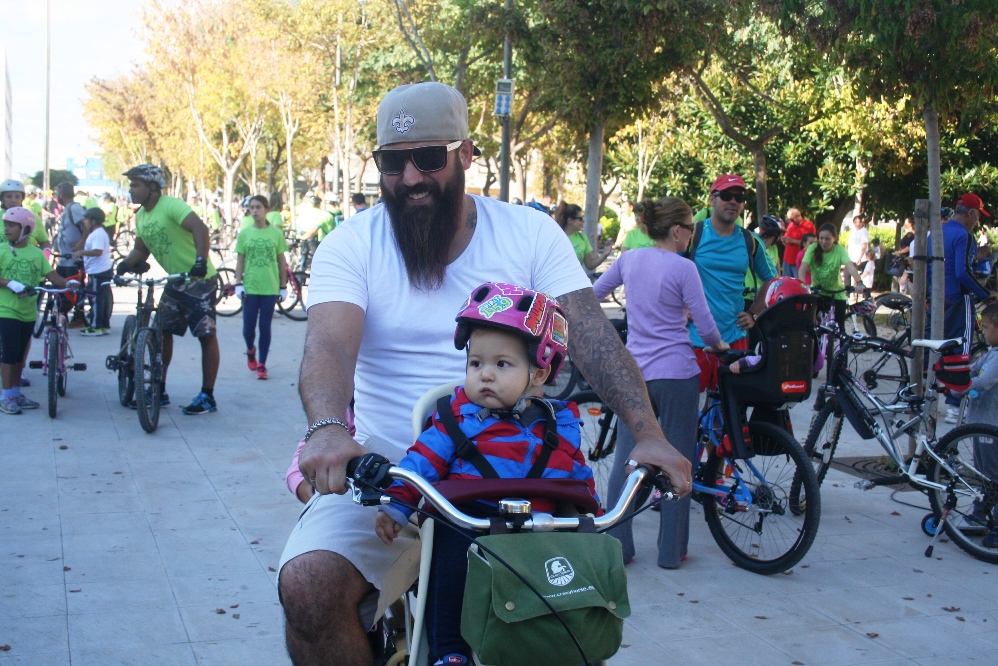 Poco después de las 11.00 arranca la prueba grande y la larga marcha verde comienza su recorrido, no sin atascos y a un ritmo muy lento y pausado. Son un total de 742 ciclistas, que recorren de un extremo a otro del municipio. Tras la primera salida, llega el turno del circuito urbano infantil de 7,5 kilómetros y la rúa baby de 800 metros para triciclos y bicicletas de cuatro ruedas, que reúnen entre ambas a 606 participantes.