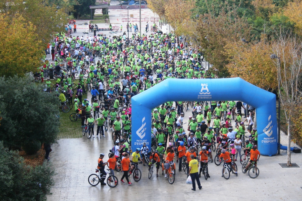 @Noudiari / El Bulevard Abel Matutes está casi a rebosar. Faltan pocos minutos para las 11.00 horas y la cola para inscribirse es casi interminable. Un total de 1.348 participantes, la mayoría vestidos con camisetas verdes, toman parte en una nueva edición del Día del Pedal, que como todos los años por estas fechas recorre en bicicleta las calles de Vila.