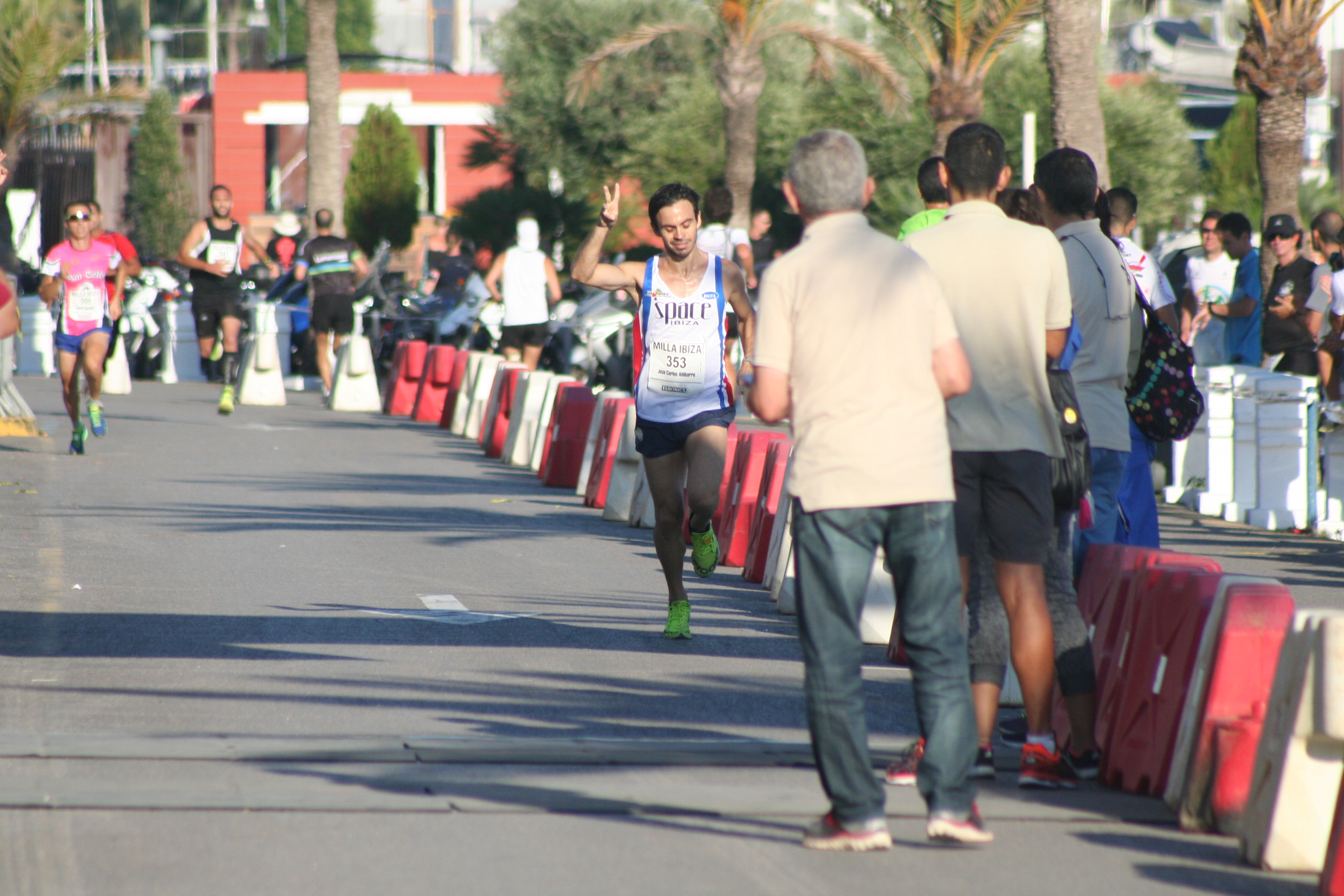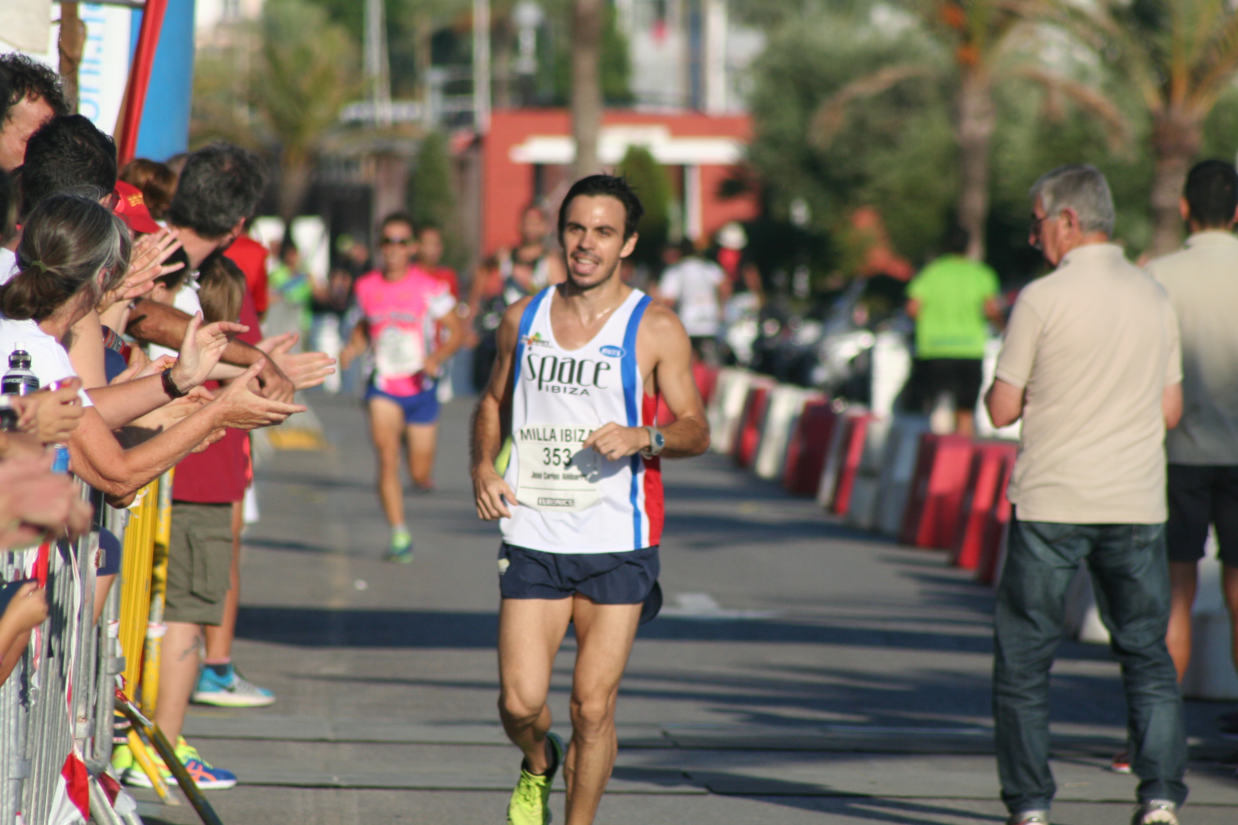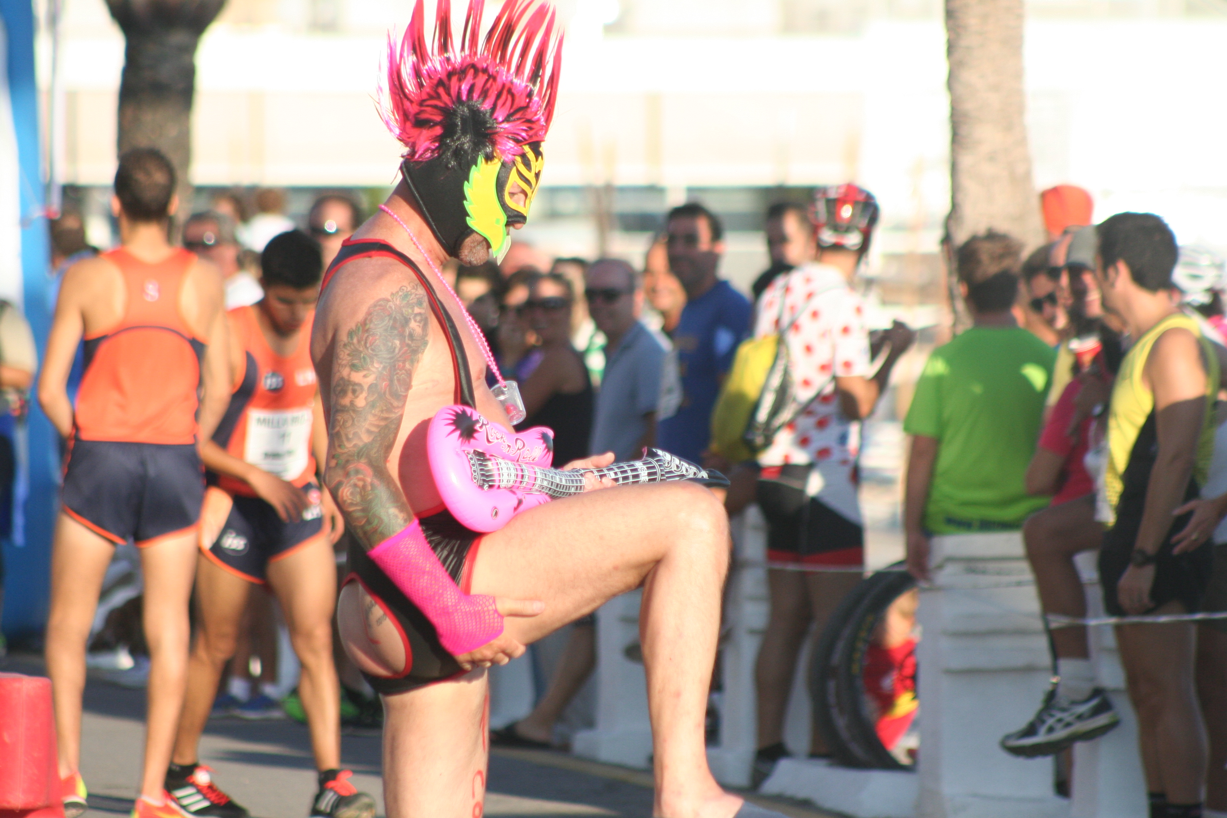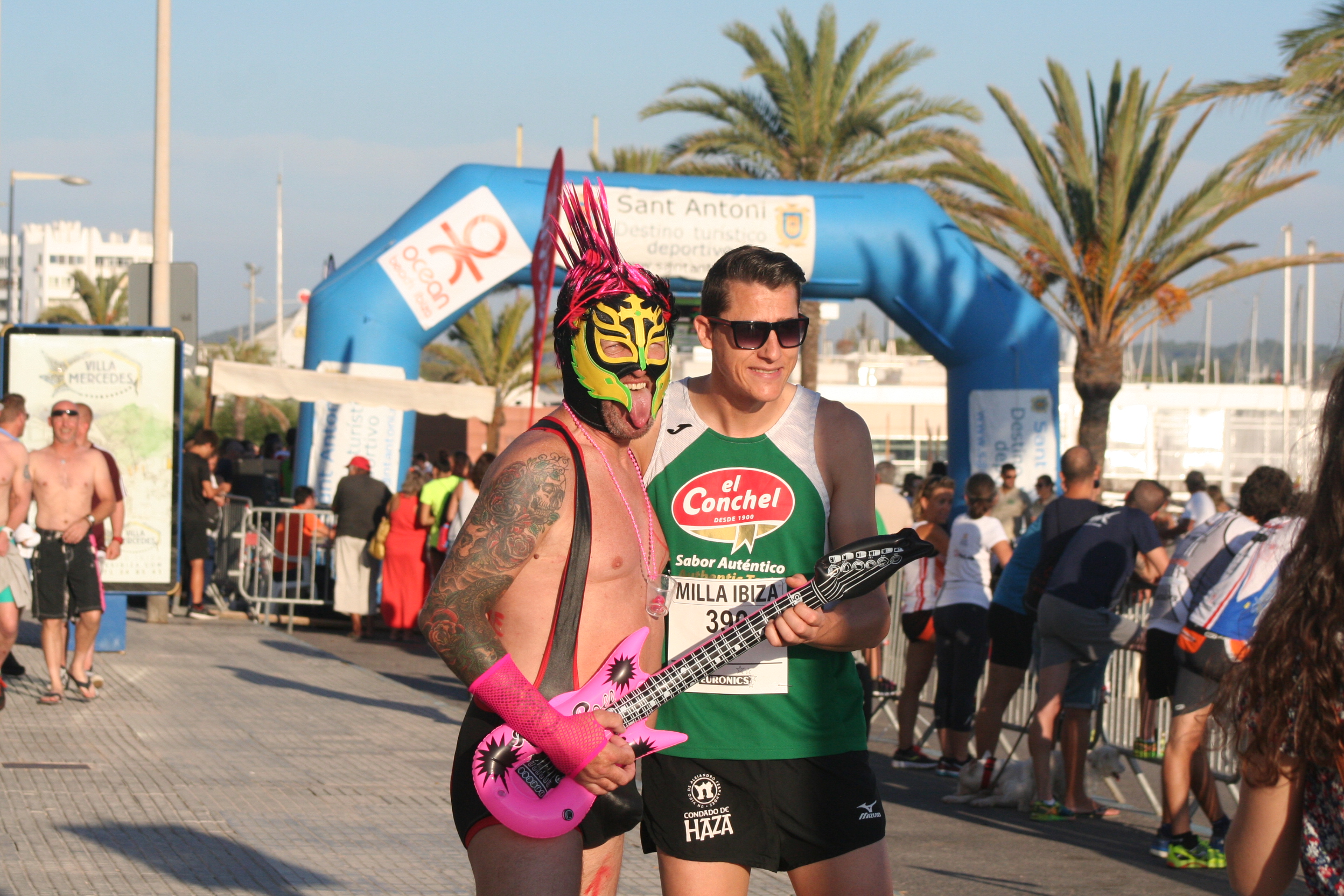 La Milla de este año, celebrada en Sant Antoni, ha tenido un poco de todo, emoción de principio a final en las pruebas estrella y hasta un espontáneo que se ha colado en el carril de los atletas disfrazado de rockero, con una guitarra hinchable rosa y el trasero al aire, para desternille del numeroso público y sorpresa de la organización.