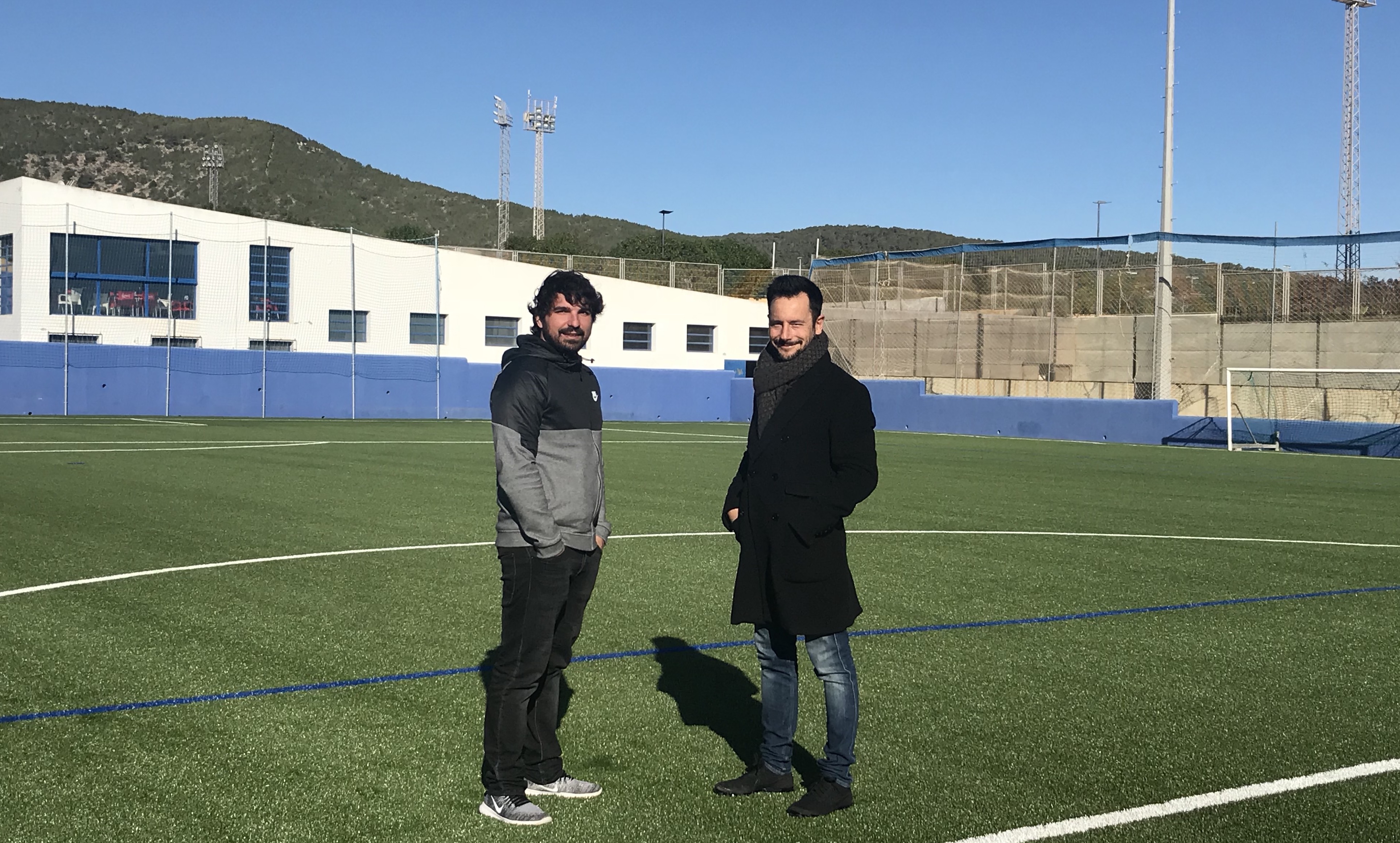 Rafa Ruiz i Agustín Perea a la nova gespa de Can Misses 2.
