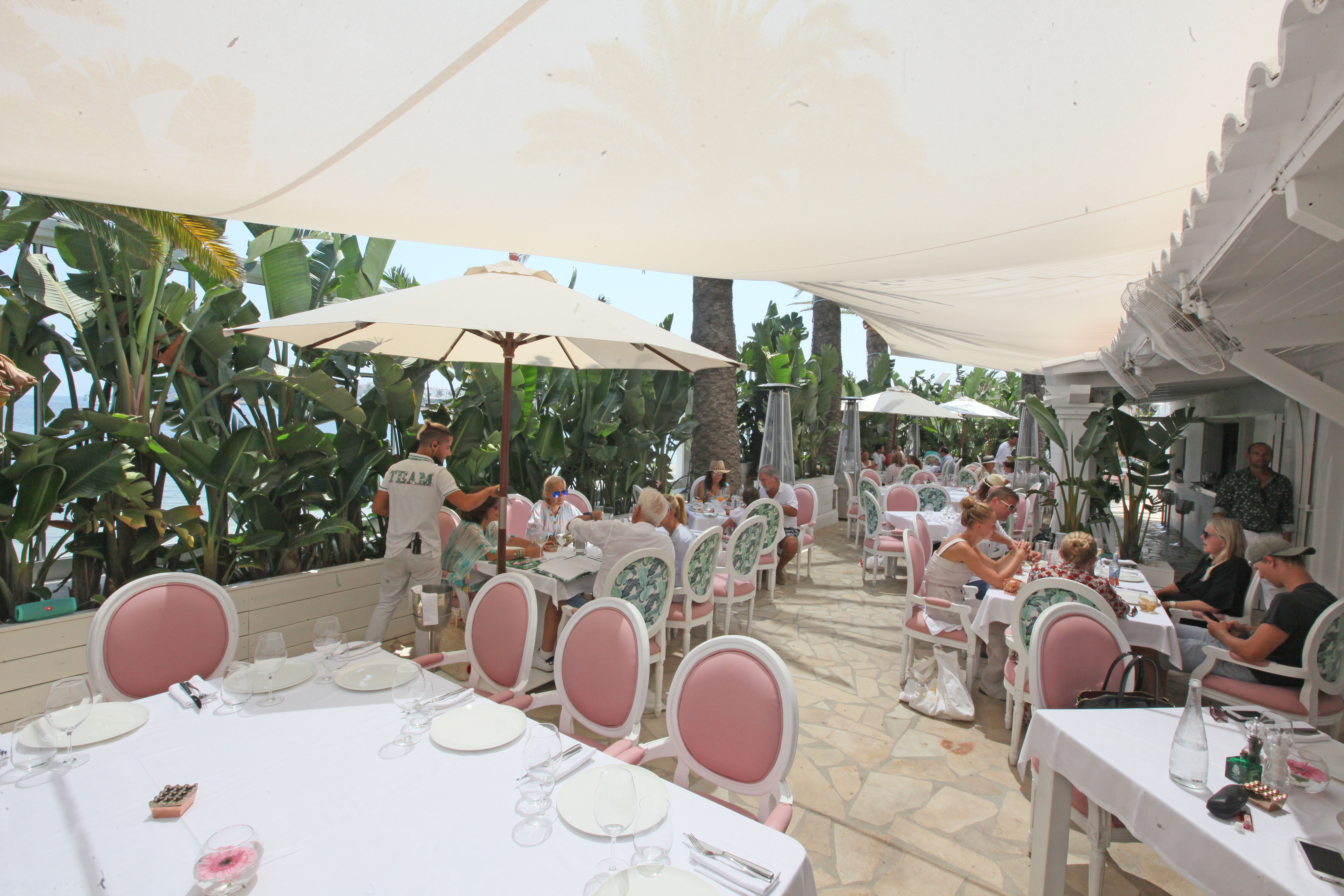 El establecimiento es un fiel reflejo de la amistad que une a Guetta y Mahrouk, que han puesto su puntada en cada uno de los detalles de un beach restaurant que rezuma elegancia y calidez a partes iguales. Unas instalaciones en las que un rosa chicle se enlaza con sutileza con la vegetación, que deja entrever entre sus ramas la maravillosa bahía de Talamanca.