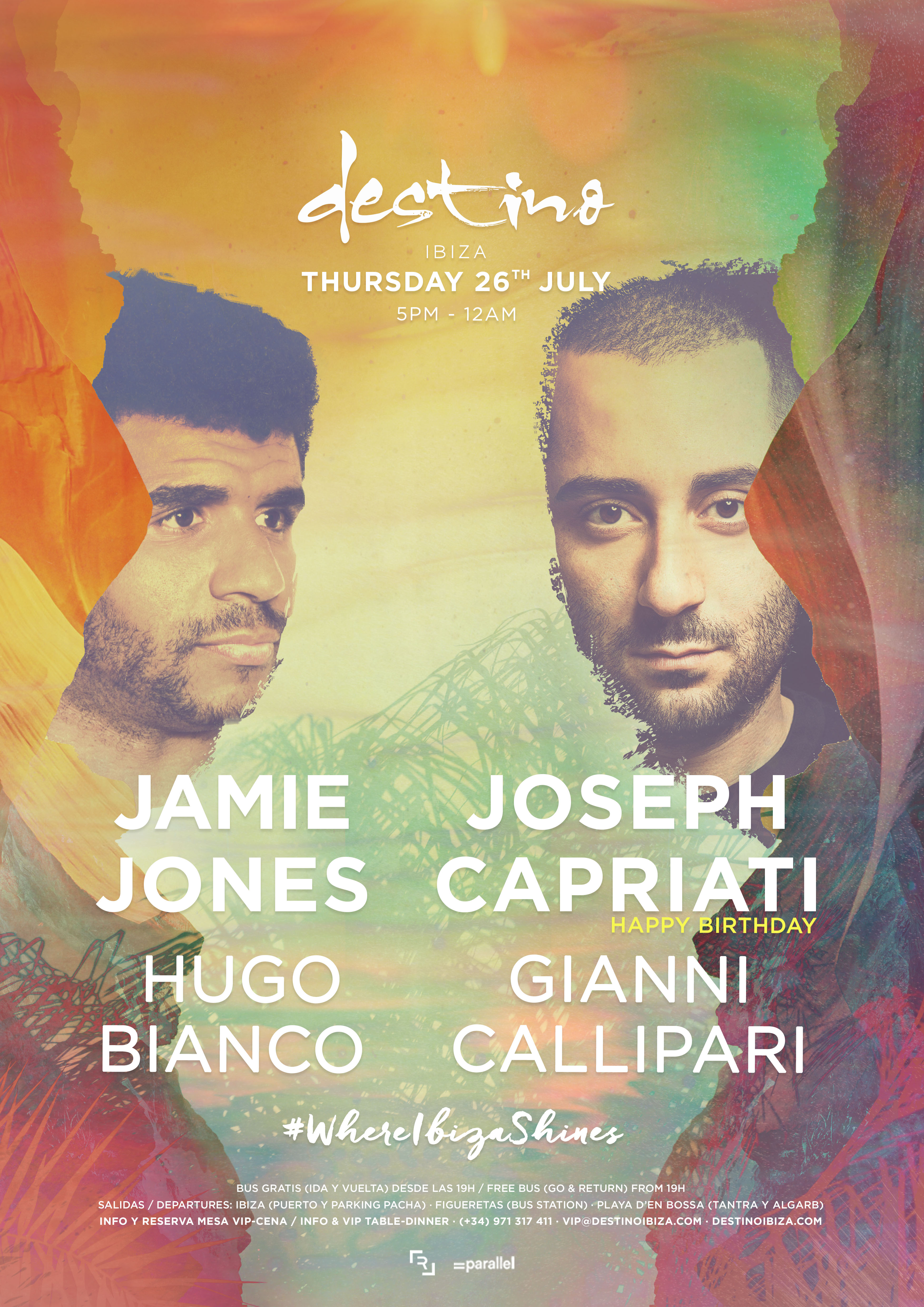 Para añadir más emoción, Joseph ha invitado a un artista muy especial, el DJ galés Jamie Jones, y otros dos artistas de su equipo. Fiel al concepto de la fiesta, los artistas invitadostambién serán amigos de Joseph, por lo que la química que se experimentará entre ellos en la DJ booth creará una magia espontánea que hará brillar Destino Pacha Resort en una cita única para los amantes del house.