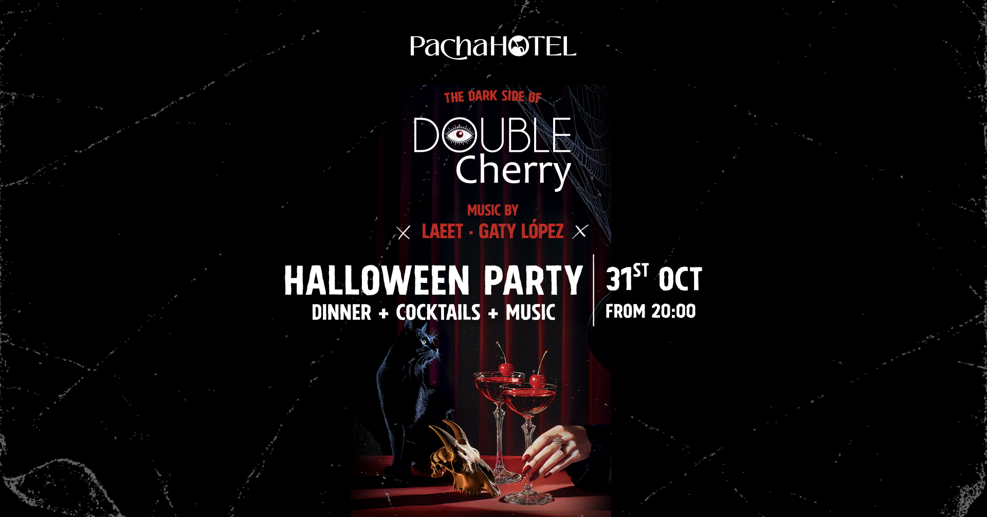 La velada promete ser una celebración inolvidable de música, travesura y magia a medianoche, con las sesiones house de Laeet y Gaty López, que pondrán banda sonora a una noche marcada por la energía eléctrica y el toque más seductor de la marca Double Cherry. Cena, cócteles y un ambiente envolvente convertirán el restaurante del Pacha Hotel en una guarida para las criaturas de la noche, donde cada compás invocará la emoción de lo inesperado.