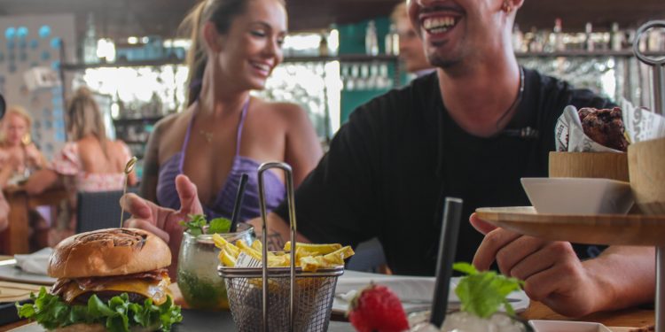Join the fun: las puertas de Dunes están abiertas para todo aquel que quiera unirse a la divertida locura que propone este local anfibio. Este clásico de Platja d’en Bossa es, a la vez, un club donde suenan la mejor electrónica y un dinner en el que es obligatorio mancharse las manos al más puro estilo americano. Los cócteles de autor y las shishas que animan las conversaciones de la terraza se mezclan con los costillares untados de salsa barbacoa, las ensaladas césar, las gyozas de sabor oriental, los sándwiches gigantes o las famosas hamburguesas de Dunes. Estos son algunos de los bocados que se pueden cenar en un lugar donde a muchos clientes les gusta tomarse la primera copa antes de seguir su ruta nocturna. Otros, en cambio, saben que es la última cocina de una de las zonas de ocio más animadas de Ibiza en cerrar (sus fogones están encendidos desde las nueve de la mañana hasta las dos de la mañana) y aprovechan el regalo. Son los paladares que llegan a Dunes con hambre y ganas de bailar al ritmo de una sesión de house o alucinar con los espectáculos de acrobacia que ambientan uno de los locales más animados de una isla que siempre tuvo fama de dormir poco durante el verano.
