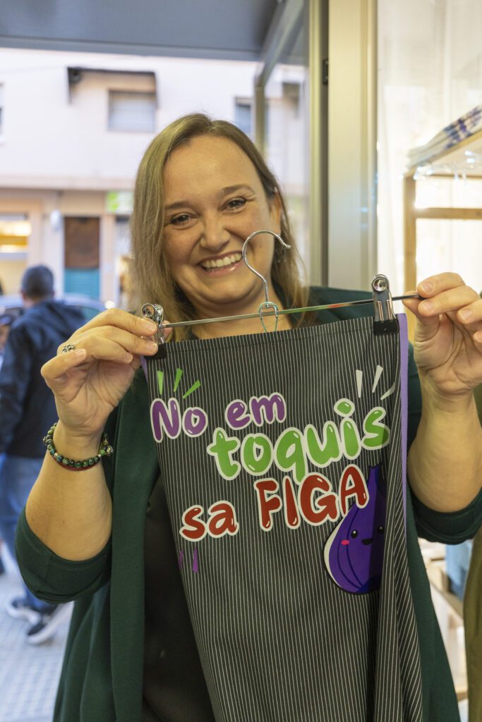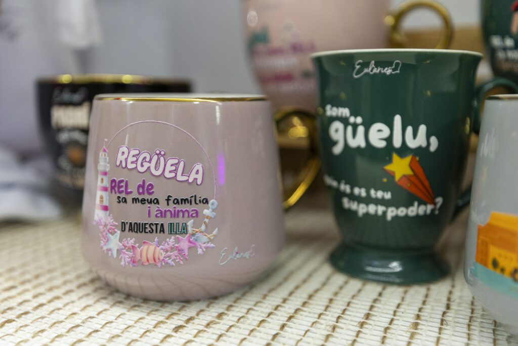 Los mensajes que ilustran estas piezas basculan entre lo emocional y el humor. Un ejemplo del primer estilo son las tazas dedicadas a familiares como el ‘Mamá, ses teues rels em sostenen i es teu amor m’impulsa’ o ‘Regüela, rel de sa meua familia i ànima d’aquesta illa’. Más informales son los delantales de cocina, con frases como ‘Som sa que talla es bacallà’, ‘Keep calm, en Cardona està cuinant’, ‘No em toquis la figa’, ‘Som es gall’, o camisetas como ‘tros d’ase’.