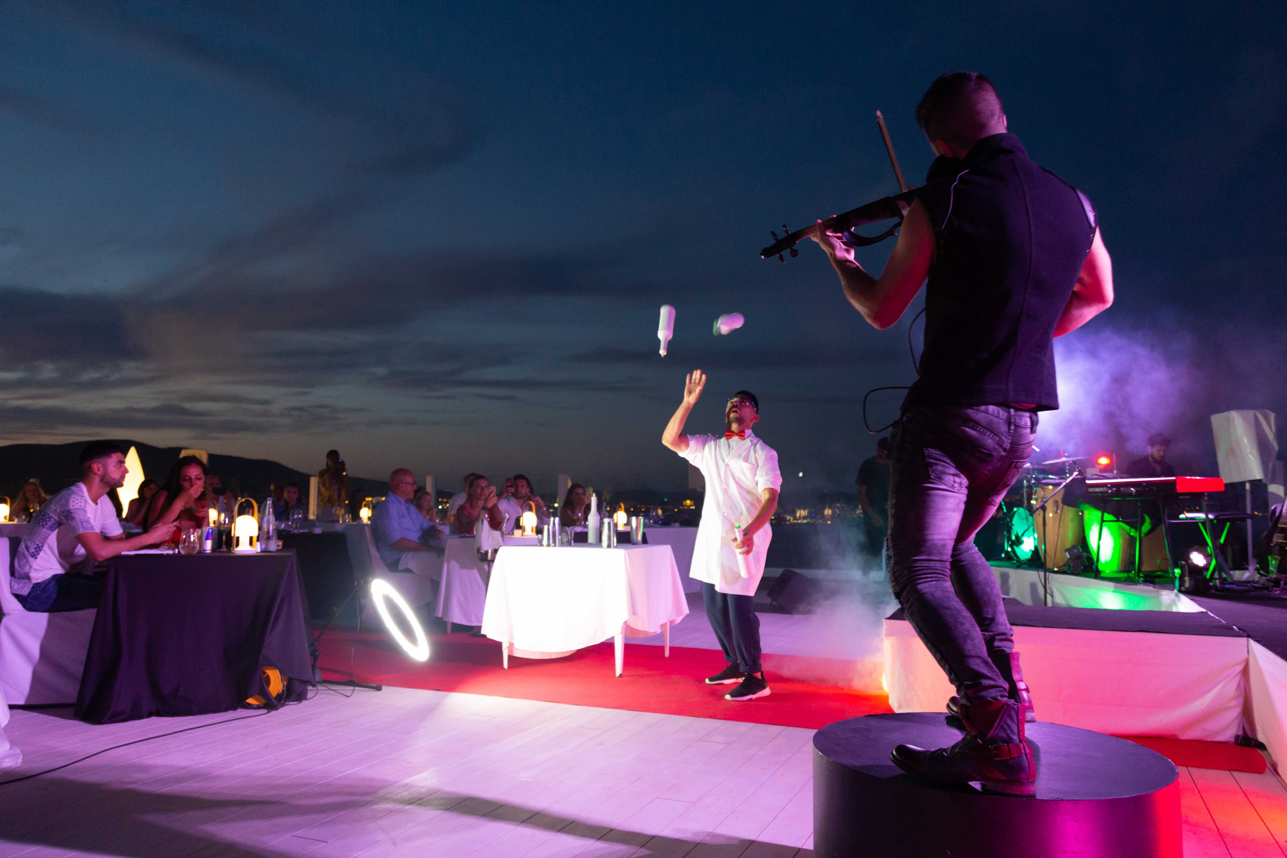 Todos ellos harán las delicias de los paladares más exquisitos mientras disfrutan de una experiencia única y de un maravillo atardecer en una atmósfera amenizada por música en vivo y DJ, bailes de flamenco, percusionistas, saxofonistas, acróbatas y otras actuaciones.