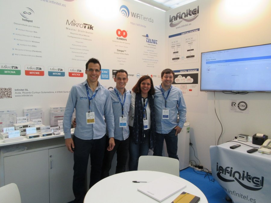 Infinitel estuvo presente en la exposición presentando las últimas novedades de productos WiFi de las marcas que representa (MikroTik, Ubiquiti, RF Elements, Netgear), el software de Infinitel HotSpot para hostelería, el nuevo portfolio de productos de fibra óptica y la solución completa FTTH GPON de Telnet Redes Inteligentes.