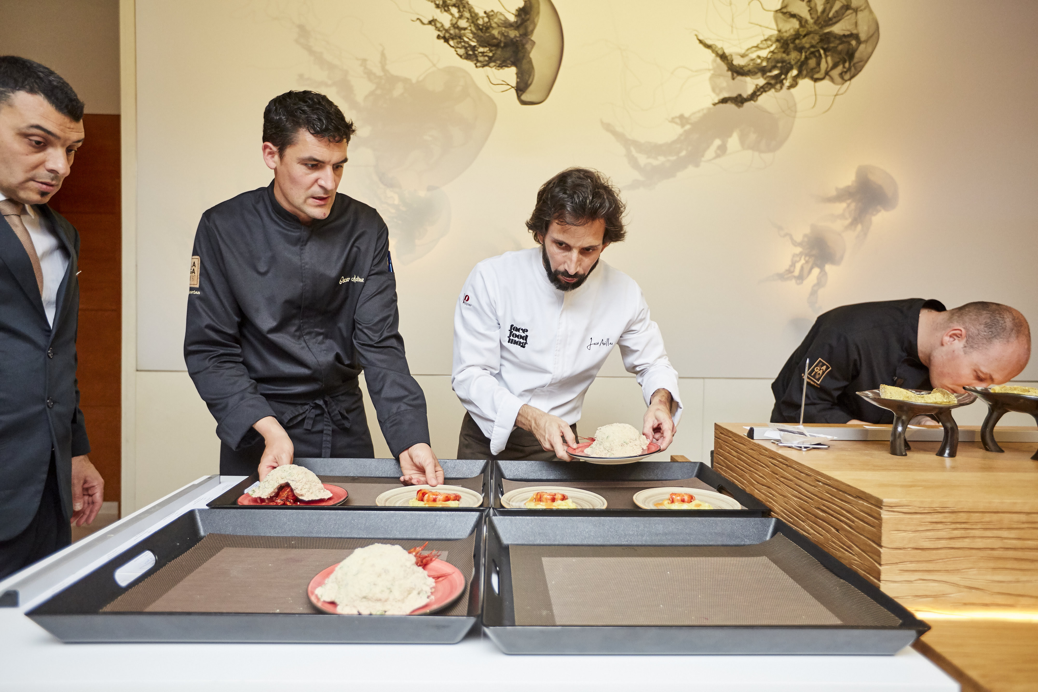 Las propuestas de ambos chefs y sus equipos fueron combinándose de manera exquisita, consiguiendo que cada uno de los cinco sentidos de los invitados se deslizaran suavemente sobre una ola de sabores, colores, aromas, texturas y perfectas presentaciones.