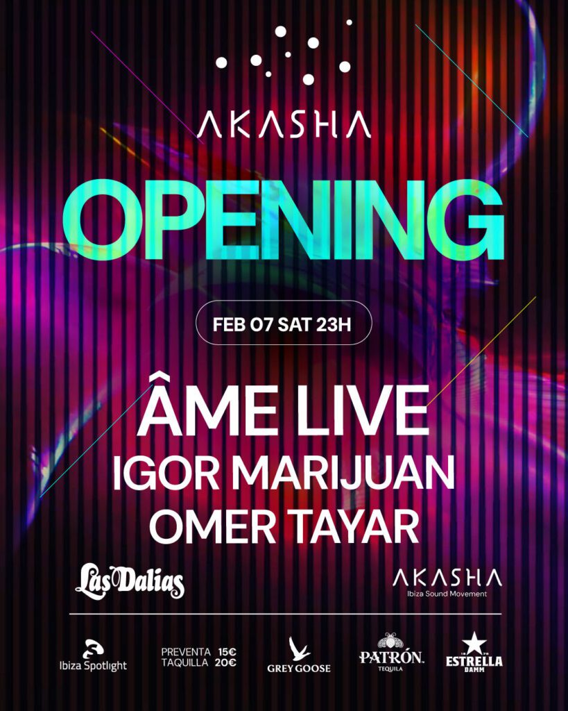 Este sábado Akasha inaugura un 2026 muy especial, el año en el que celebra los 5 años de Akasha, un viaje construido a base de sonidos, miradas compartidas y momentos que perduran. Una inauguración que merece ser vivida con intensidad, liderada por un line-up excepcional: Frank Wiedemann de Âme Live encabezará la noche del 7 de febrero con un directo emotivo y creativo, acompañado por Igor Marijuan y Omer Tayar.
