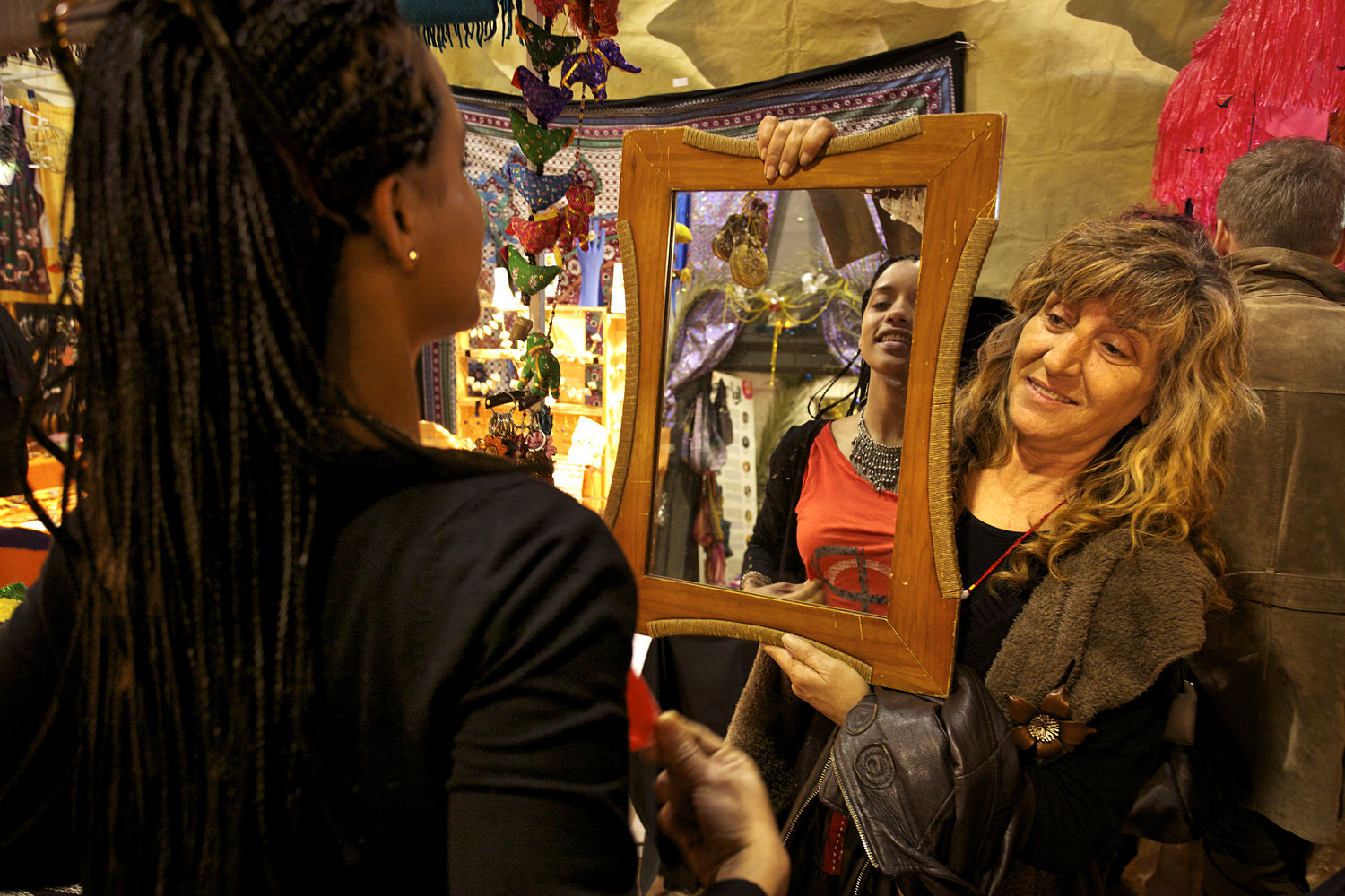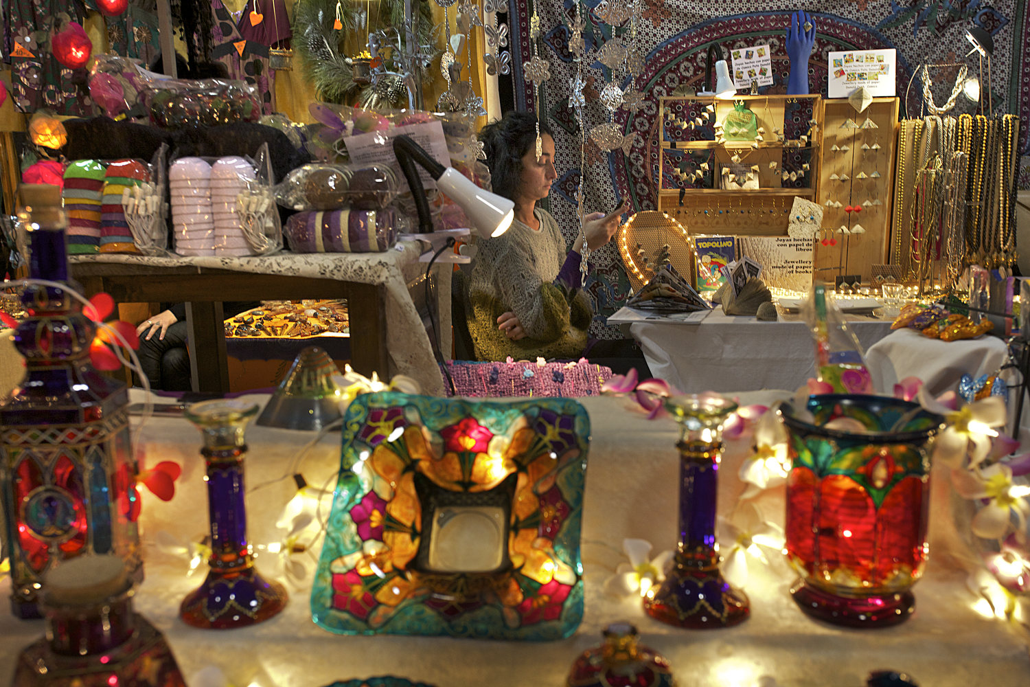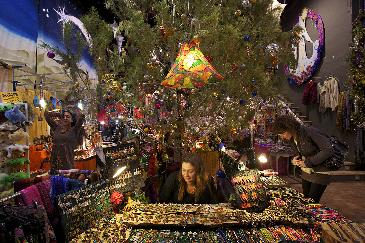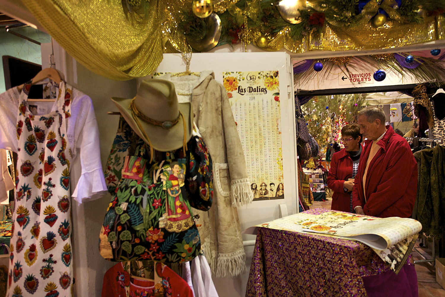 El textil y la marroquinería son dos clásicos de esta cita navideña, como también lo es la joyería artesanal. Thomas Sattler, un comerciante nacido en Alemania y que tiene un puesto en este mercadillo desde 1990, ofrece una singular mezcla de artesanía típica mexicana con piezas de bisutería de alta calidad fabricadas en Hamburgo. Coloridos exvotos comparten espacio con anillos de aluminio ionizado que lanzan un brillo pálido muy original, junto a pulseras de cristal de Swarovski y piezas de joyería con Frida Kahlo como figura central.
