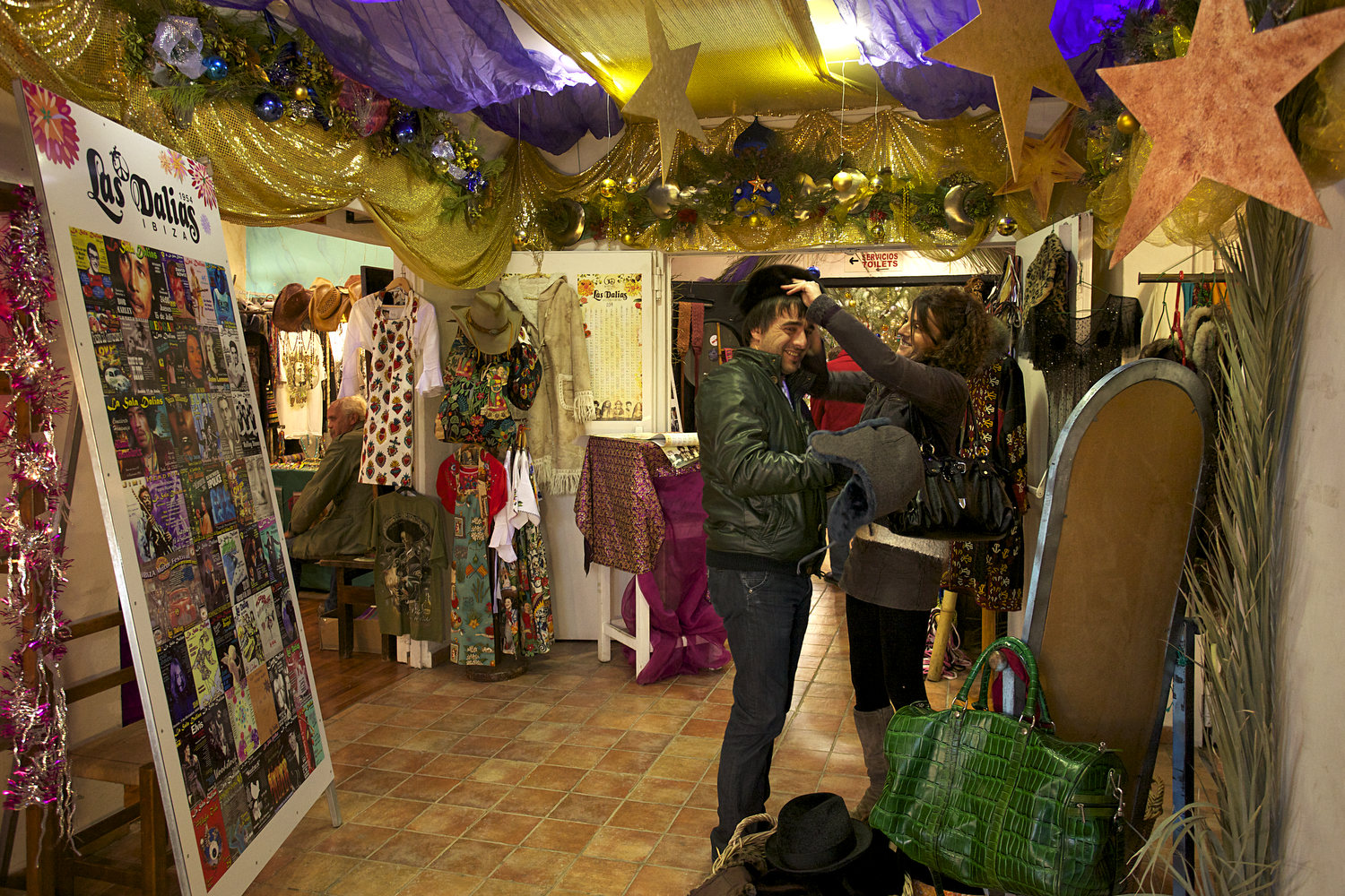 Otro de los puestos que llaman más la atención al visitante que acude a Las Dalias en busca de un regalo con el que agasajar a un amigo o familiar en estas fiestas es el de Jada Italiano, una australiana con ascendencia italiana que mezcla sus orígenes con la inspiración ibicenca para decorar máscaras traídas de Venecia. Desde las típicas que se lucen en el carnaval veneciano hasta otras mucho más vanguardistas, creadas en materiales tan resistentes como la silicona, que hacen las delicias de los más pequeños y, además, son resistentes al agua. Con taller propio, Italiano pinta en directo sus creaciones y acapara las miradas de quienes pasan por delante de su llamativo puesto.