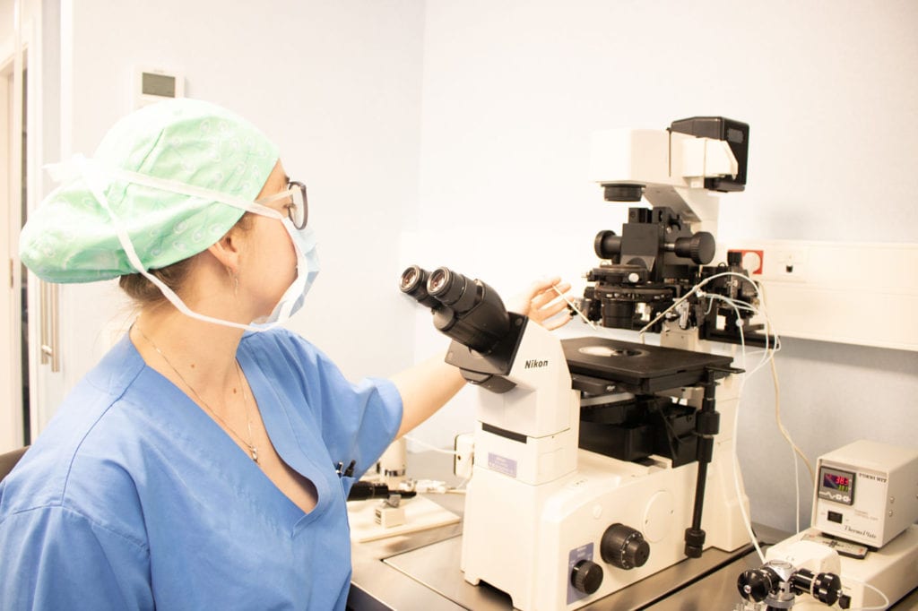El control del tiempo también es muy importante. Tras localizar los ovocitos y prepararlos hay que esperar 4 horas para inyectarlos. Posteriormente, entre 16 y 18 horas van mirando si han fecundado, así hasta el día 5. A partir de ahí, si hay embrión, se hace la transferencia. Durante este proceso embriólogas y ginecólogas mantienen estrecho contacto y seguimiento del caso.