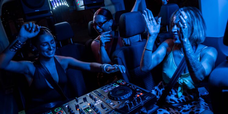 Party Van ofrece viajes en vehículos completamente transformados que cuentan con equipo de sonido profesional, consola de DJ, luces y una selección de artistas emergentes elegidos por Amnesia que pincharán en vivo durante el viaje, haciendo del trayecto la antesala de una noche inolvidable.