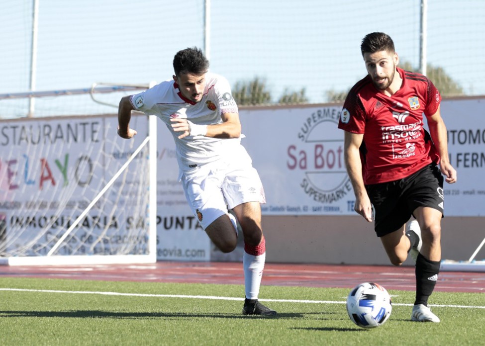 El equipo formenterense se puso pronto por delante en el marcador con un tanto de Cucu a los cuatro minutos tras una buena acción individual de Luis Canina y un mejor remate del goleador local. Se ponía el partido de cara para el conjunto de la pitiusa sur, aunque el Mallorca B se fue con todo a por el empate.