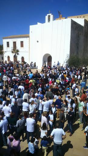 Durante la jornada, muy festiva, habido presencia de percusionistas y baile payés, entre otras animaciones, y a su momento central, ocho personas con las letras que conforman el lema de la concentración, ‘On sempre’, han bajado con cuerdas de la fachada del la iglesia, entre los aplausos y los ánimos de la población. La próxima semana, el sábado 23 de abril, está prevista una manifestación entre los núcleos de La Savina y Sant Francesc Xavier.