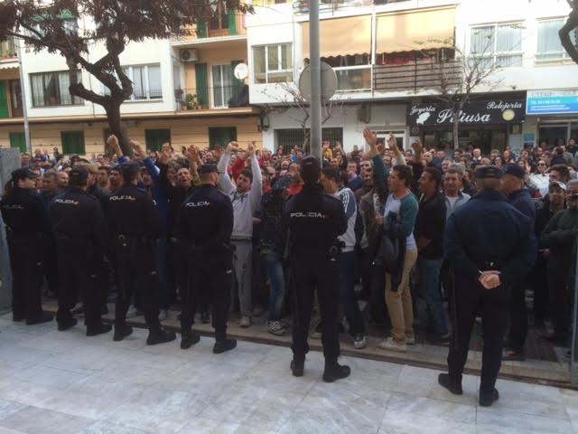 La Policía Nacional ha tenido que frenar la entrada de los trabajadores de la construcción en el edificio de la institución y también ha tenido que cortar la avenida España en la manzana del edificio del Consell, desviando el tráfico rodado por las calles colindantes. La protesta se ha prolongado hasta las dos de la tarde, aproximadamente.