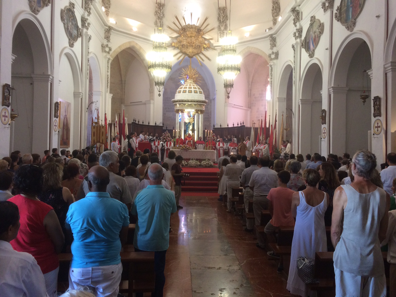 @B.Roselló / La tórrida jornada del 8 d’Agost y festividad de Sant Ciriac ha pasado hoy entre el vaivén de los abanicos, que poco han ayudado a todos aquellos valientes que han subido hasta la Catedral para asistir a los actos religioso.
