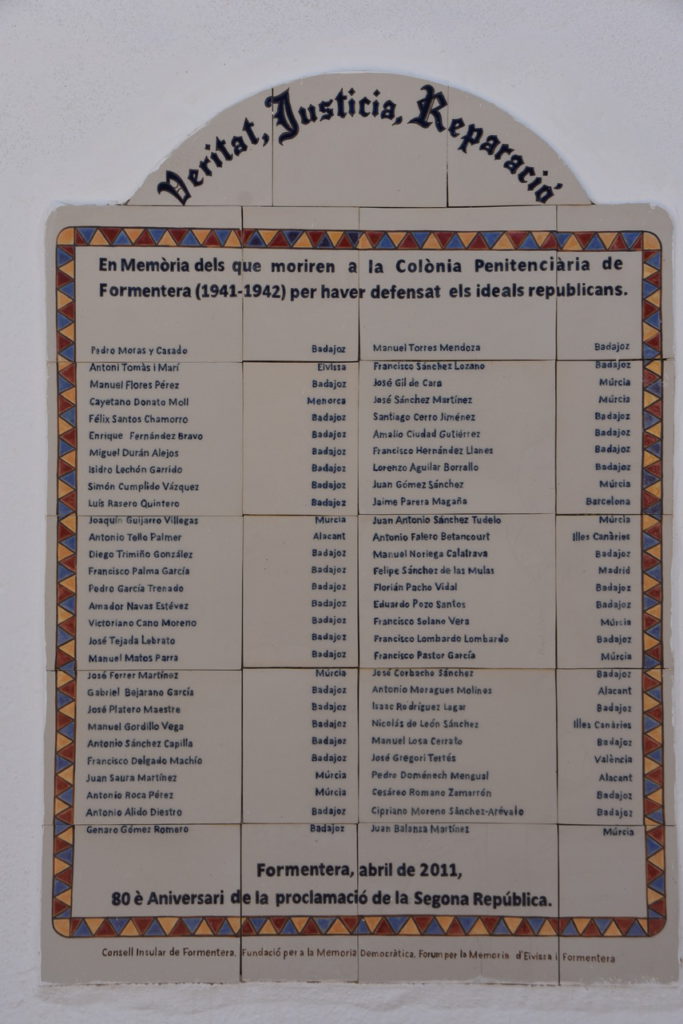 Fotografia 1: Mosaic ceràmic, obra d’Àngel Berenguer, amb els noms de les 58 persones mortes a la Colònia, promogut pel Fòrum per la Memòria d’Eivissa i Formentera el 2011.