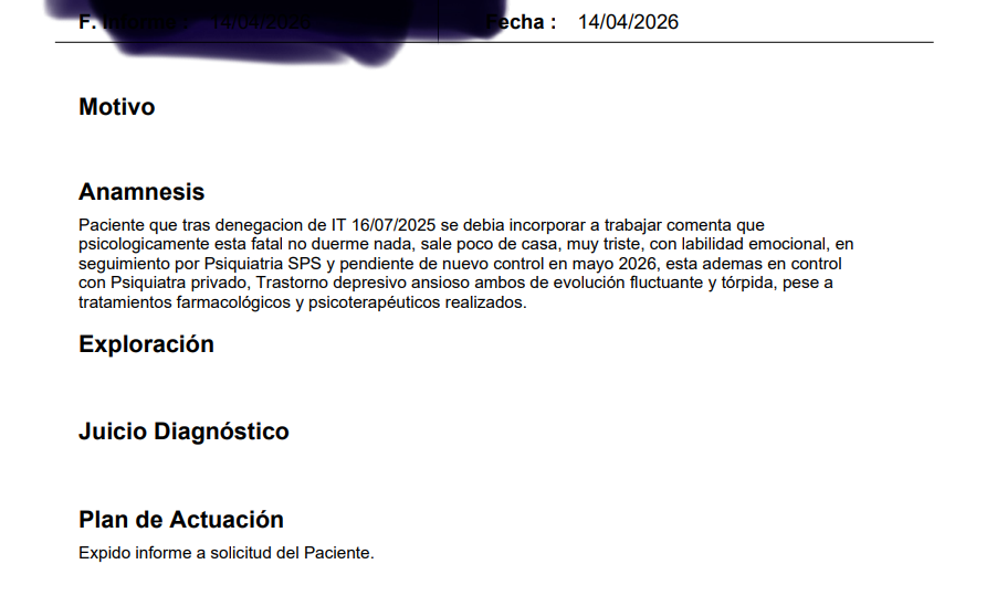 Frente a esta versión, el trabajador insiste en que su situación médica sigue vigente, que la denegación de la baja se debe presuntamente a un «bloqueo» intencionado y que ha estado justificando su ausencia: “Tengo la baja bloqueada, pero estoy justificando cada mes con mi médico y el psiquiatra que no puedo trabajar; según la empresa, no les llega nada pero yo le doy registro a todo puntualmente”, subraya en conversación con este medio.