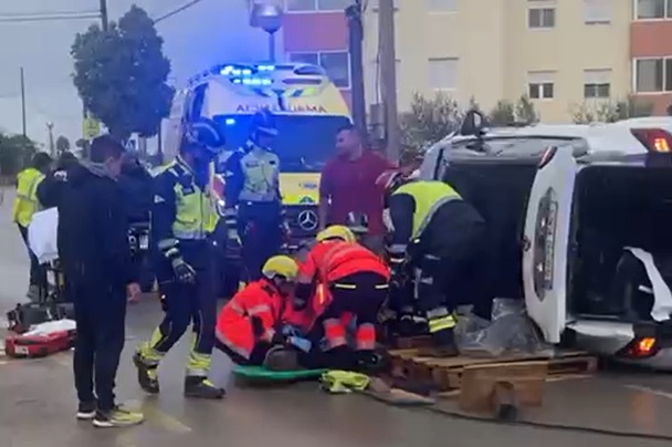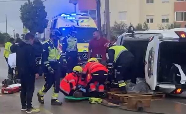A las doce del mediodía se ha producido un accidente en la calle des Cap Martinet, en Jesús. Por causas que todavía se desconocen, un vehículo ha volcado y su conductor ha quedado atrapado en el interior del mismo.